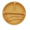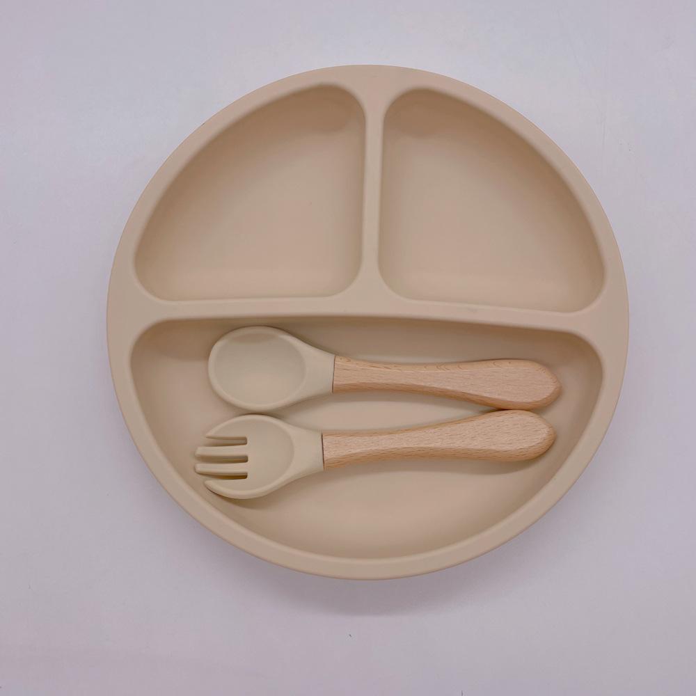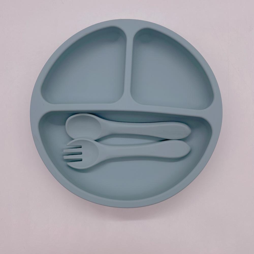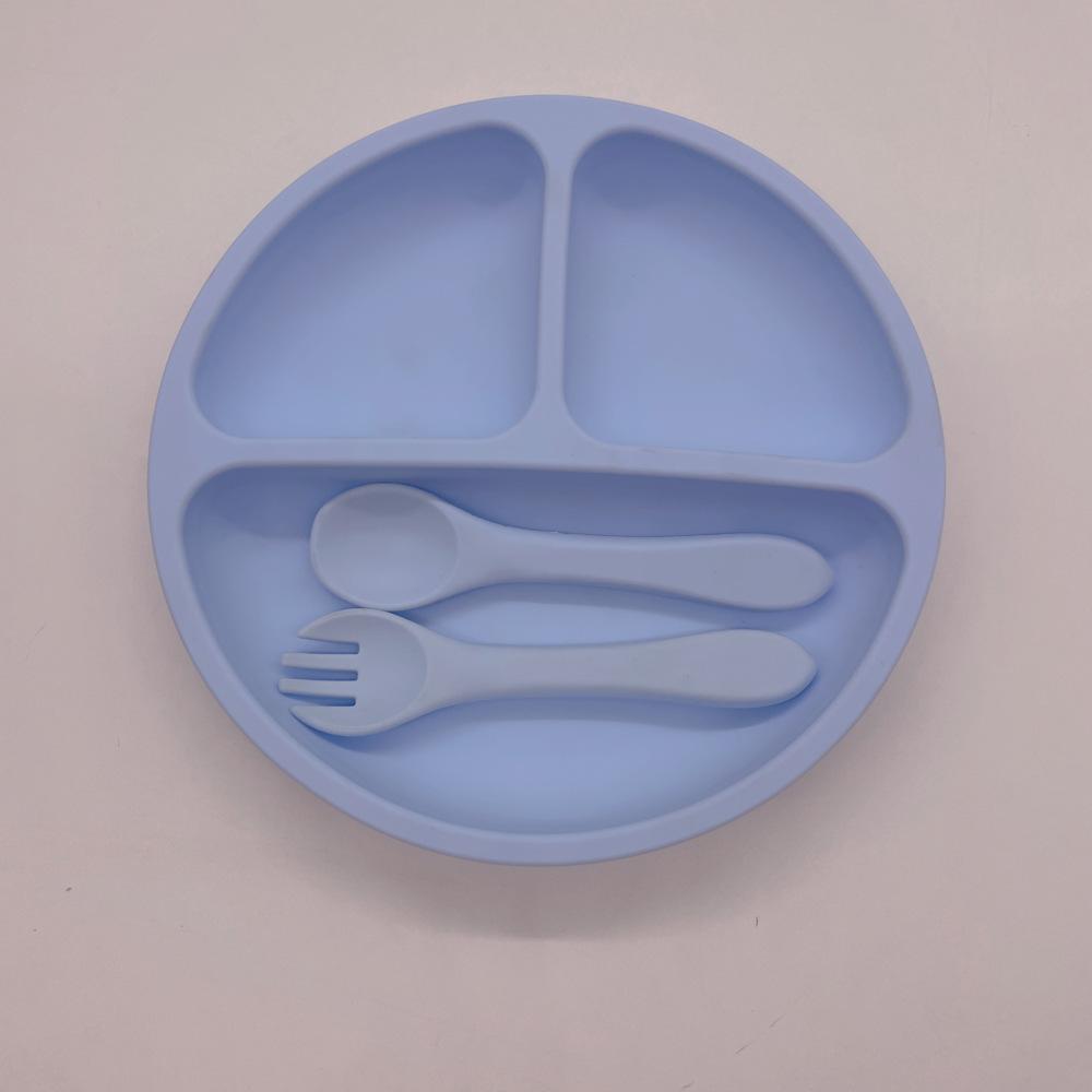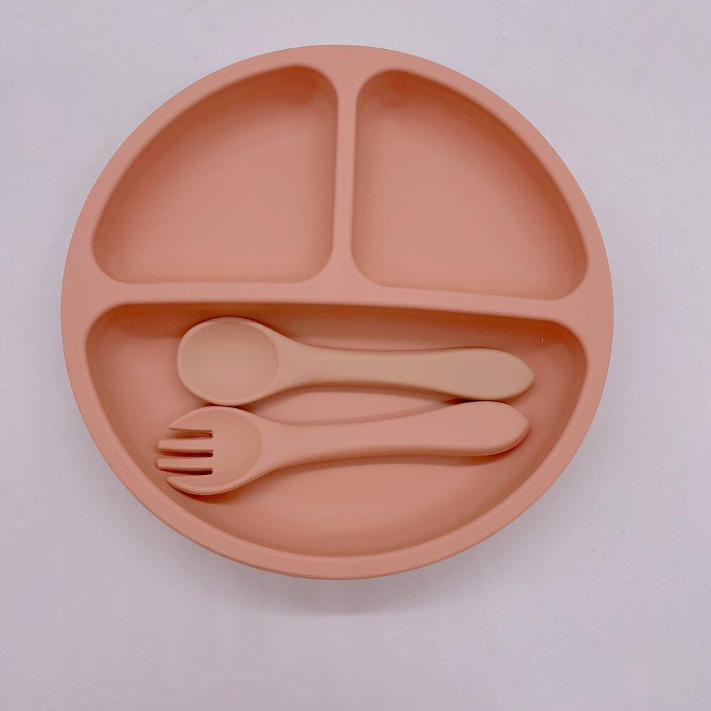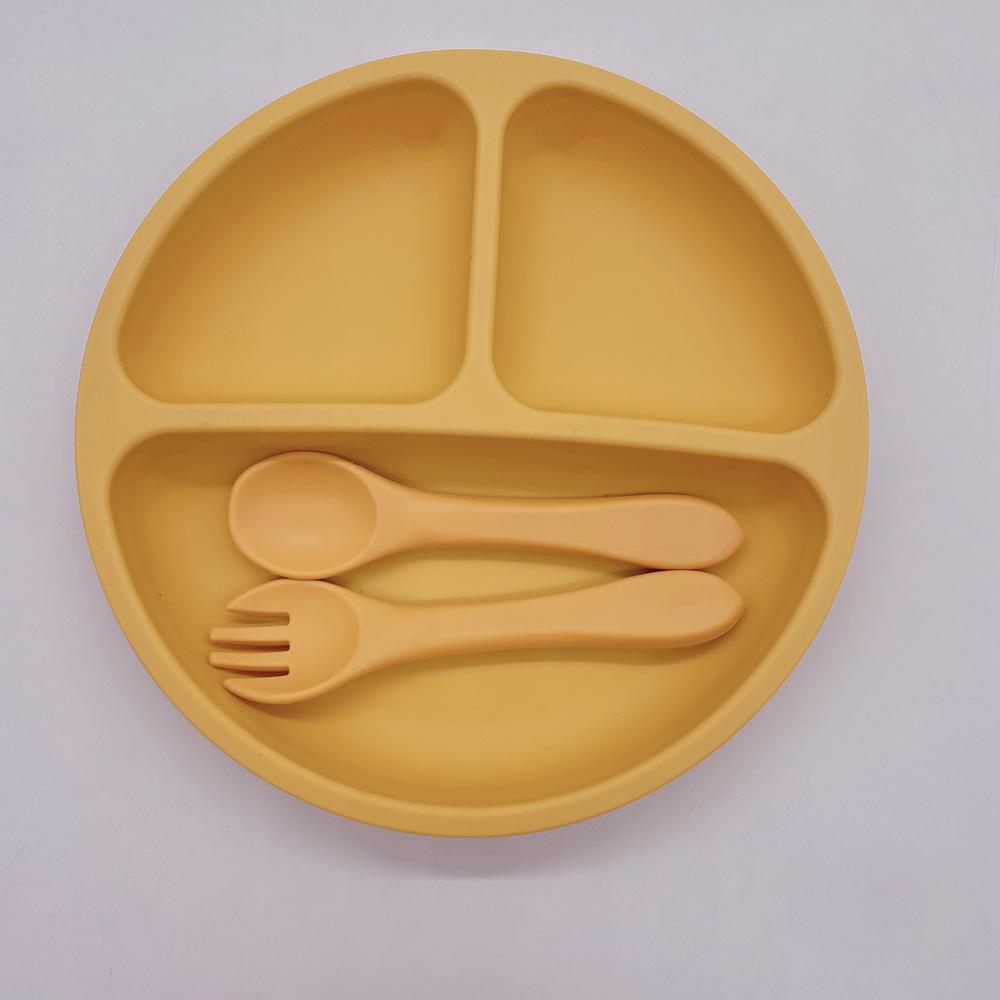 Vajilla de silicona para niños, plato redondo con ventosa y carita sonriente para bebé, plato de tres compartimentos para alimentos complementarios para bebé