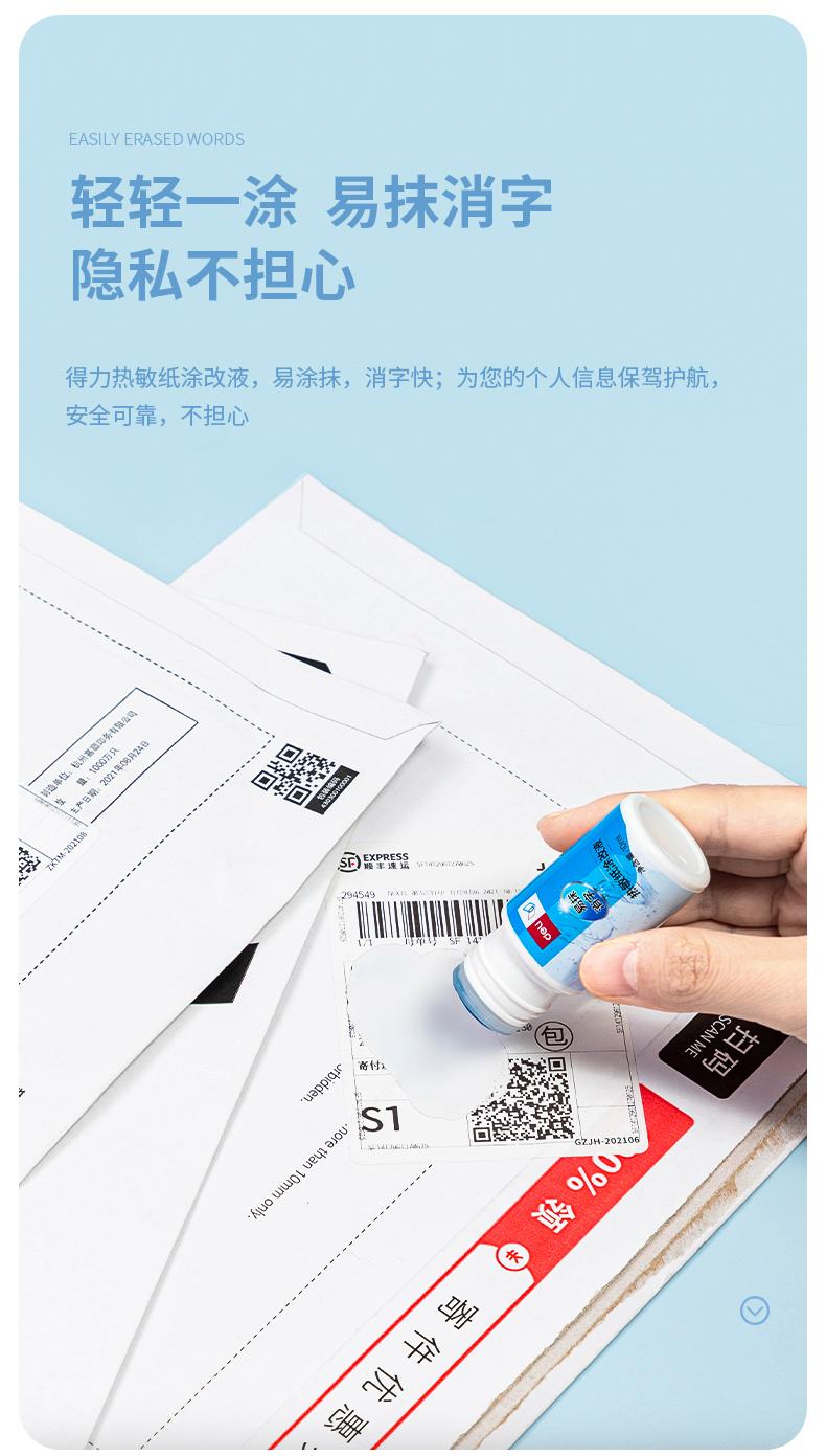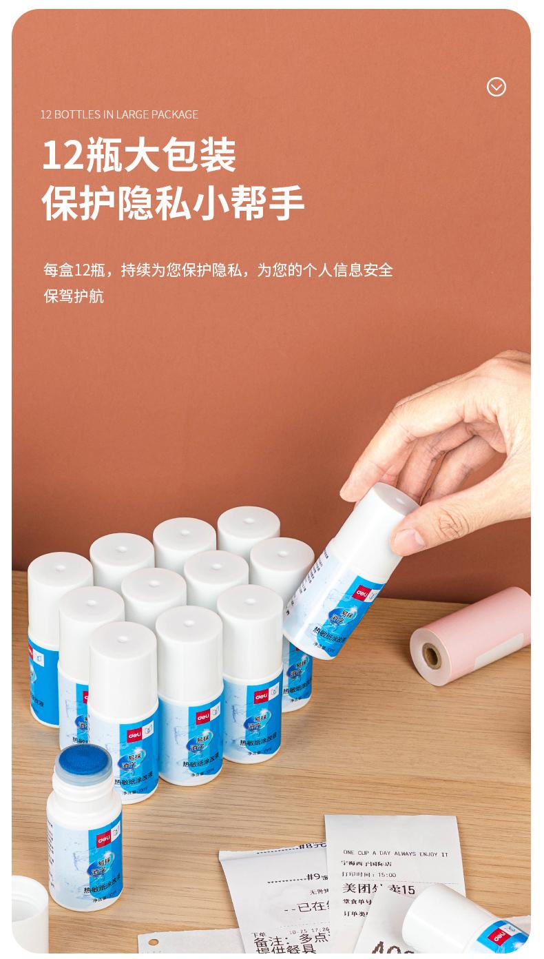 Deli líquido corrector de papel térmico bolígrafo de código Express secado rápido protección eliminación de privacidad espíritu de palabra líquido corrector sin marcas mayoreo
