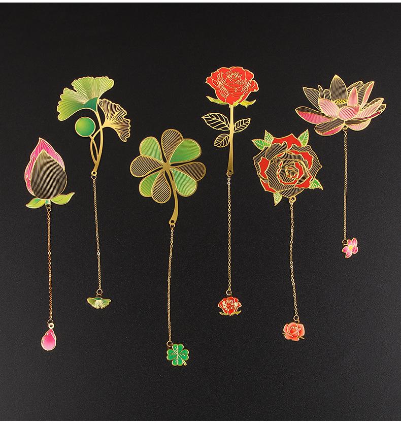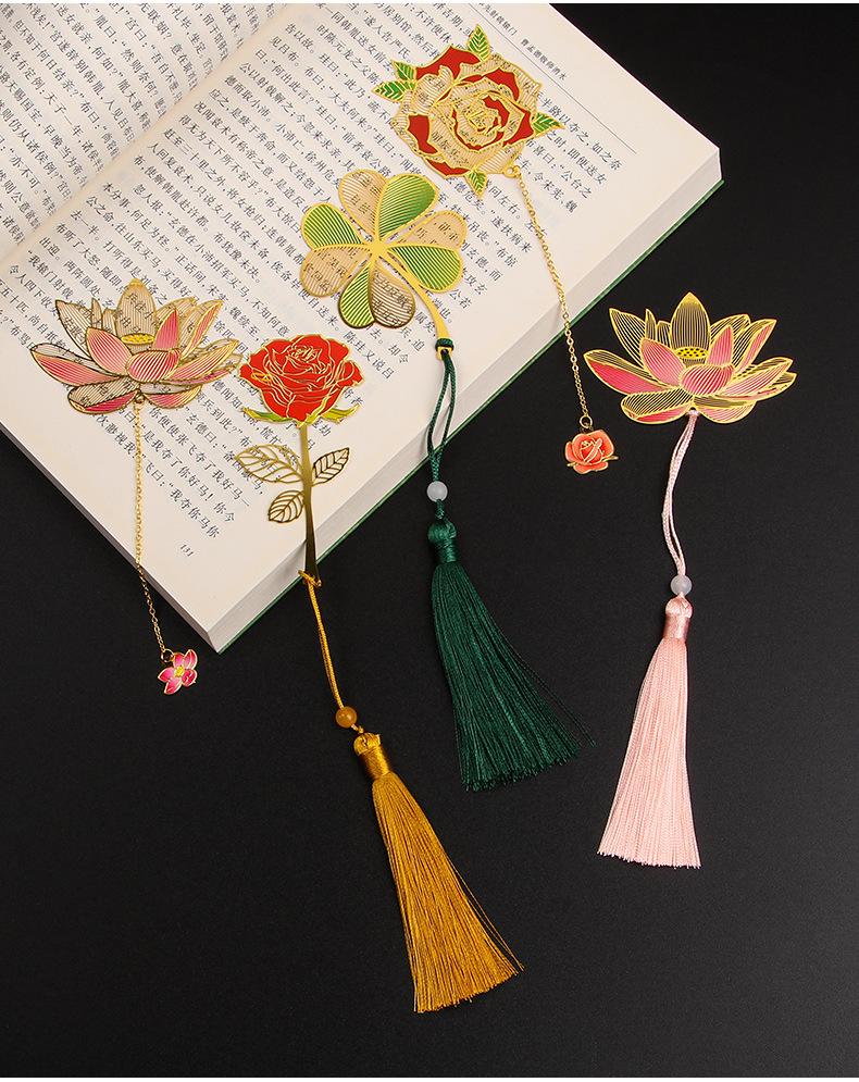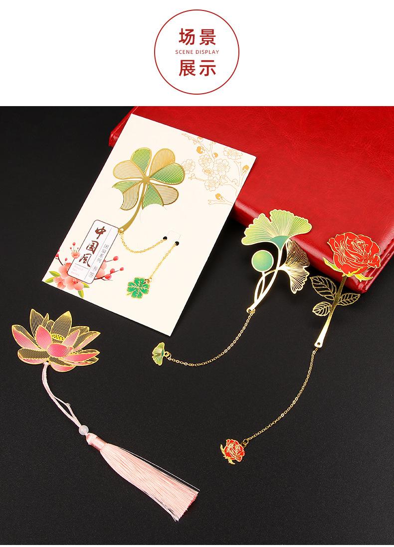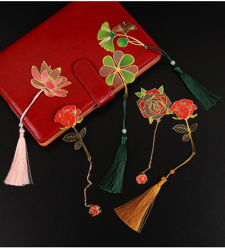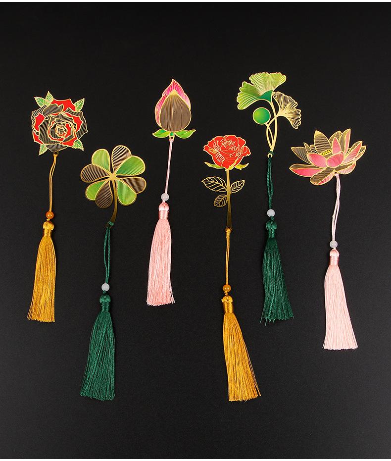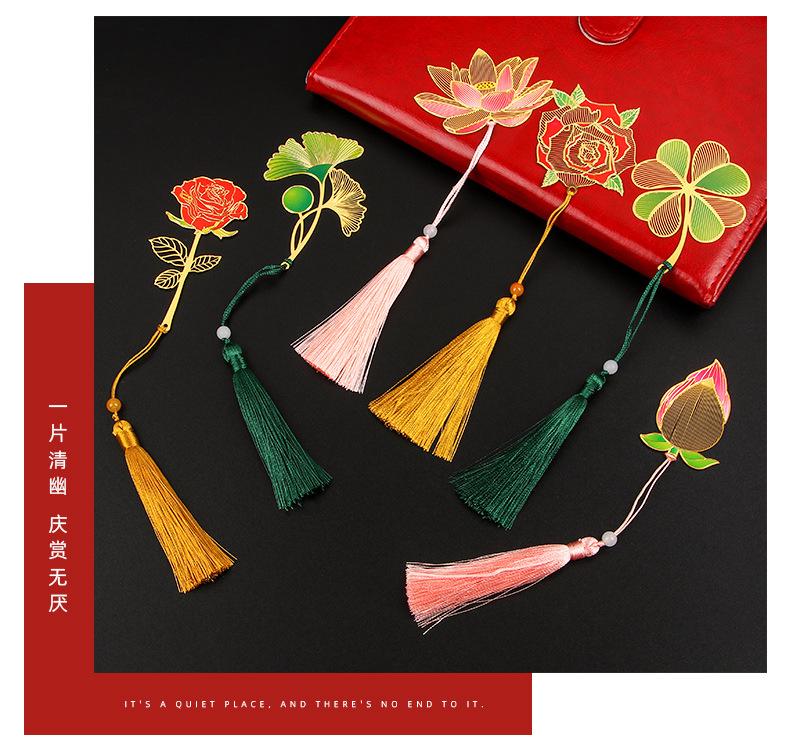 Marcapáginas creativo de metal pintado, estilo chino, con borla de latón, estilo retro, para estudiantes, regalo exquisito, marcapáginas Wenchuang, venta al por mayor
