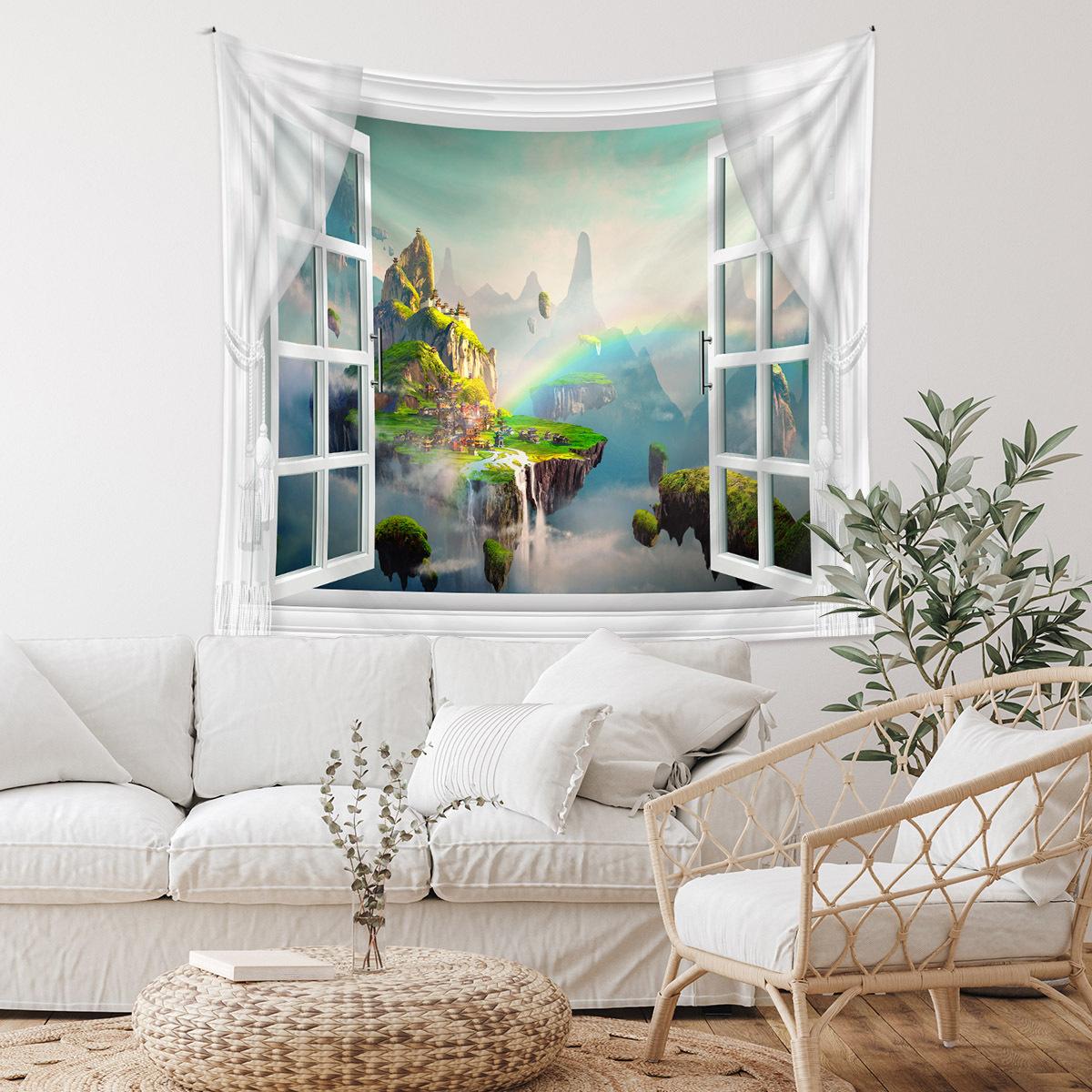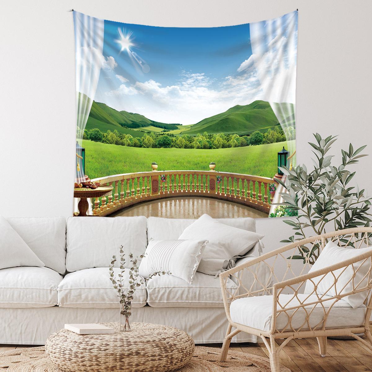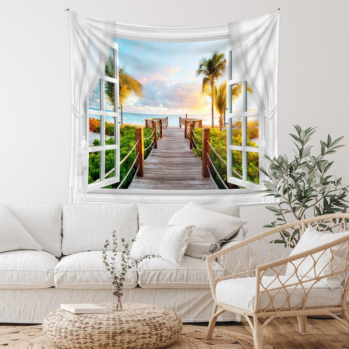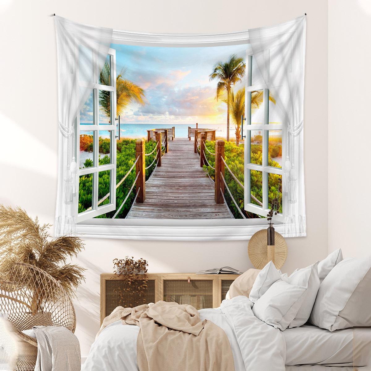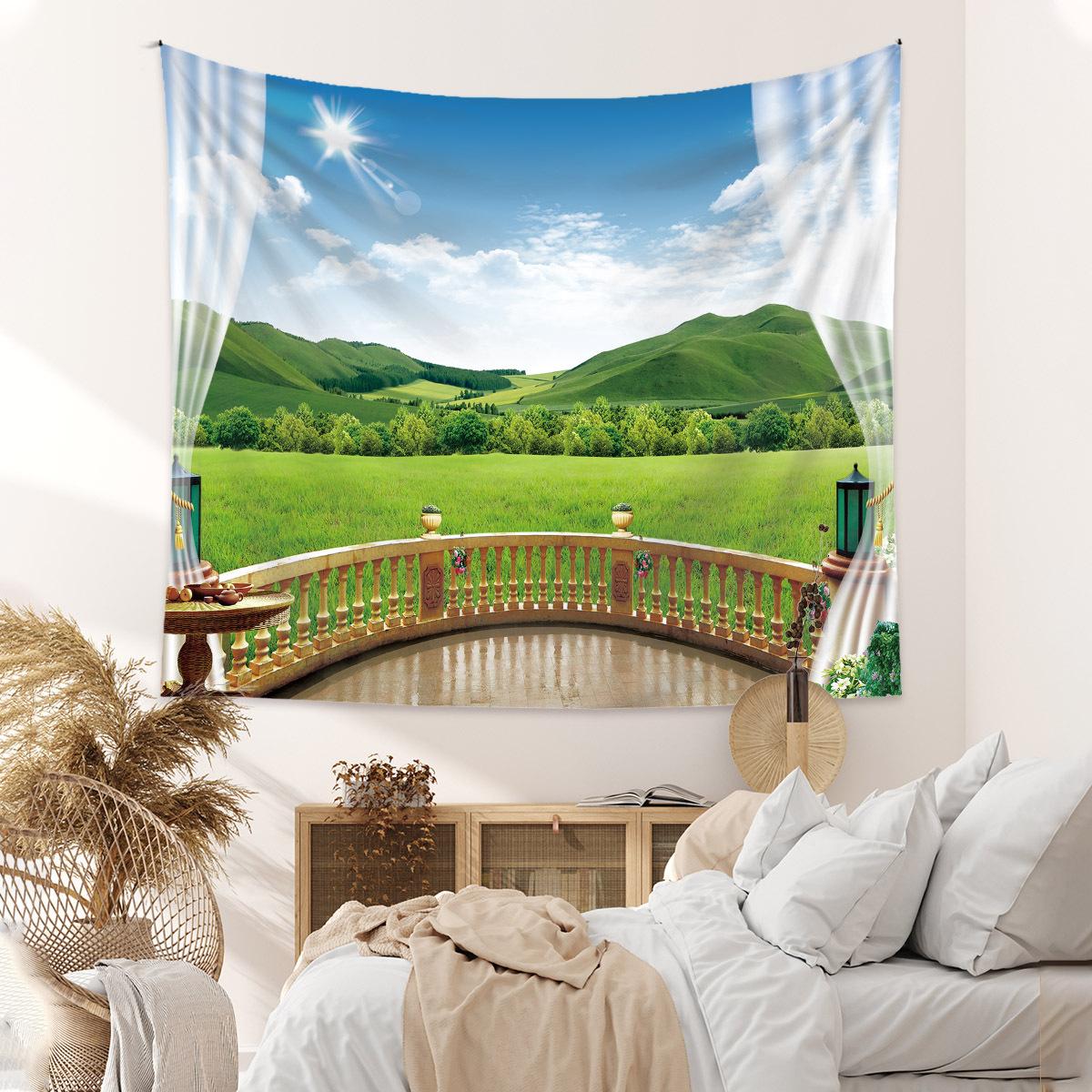 Tapiz transfronterizo para el hogar, tapiz bohemio, decoración de habitación, tela colgante, fondo de tela, tapiz de paisaje con viento.