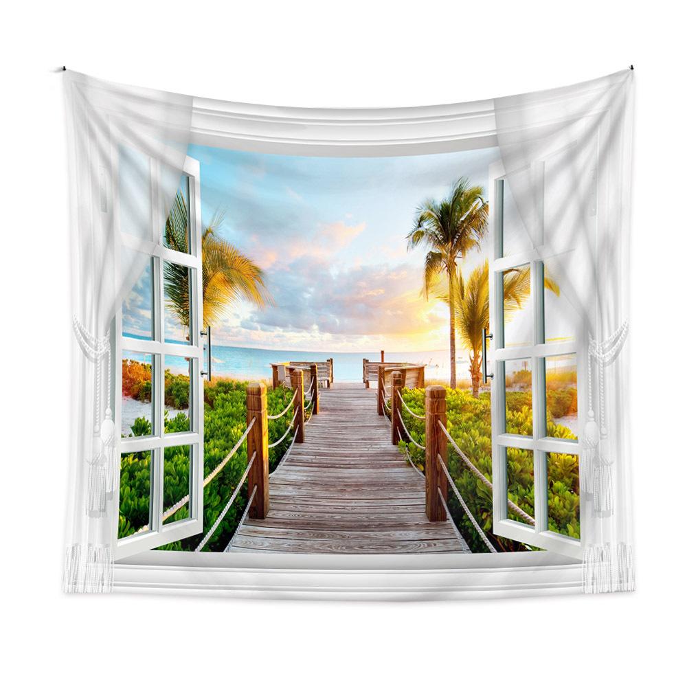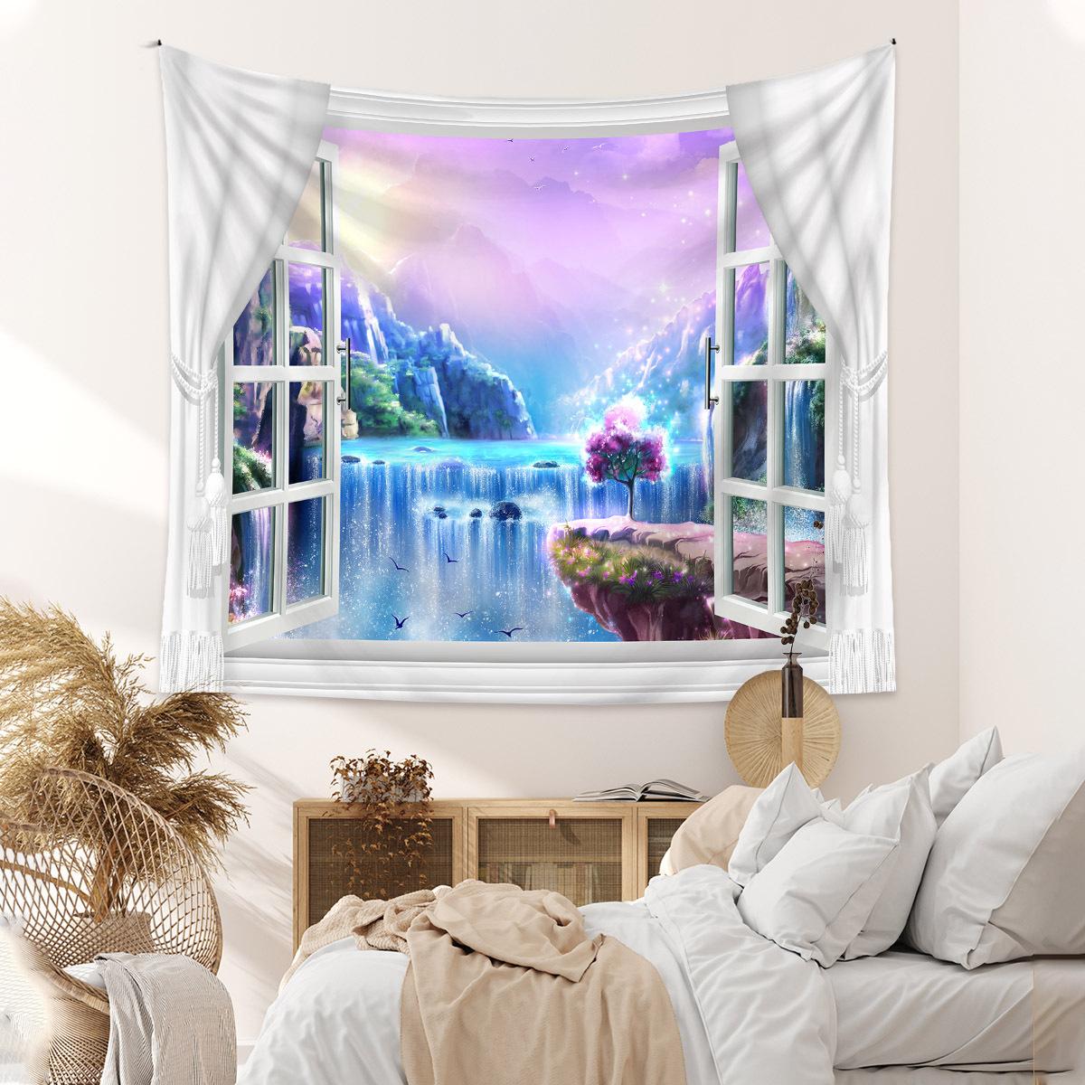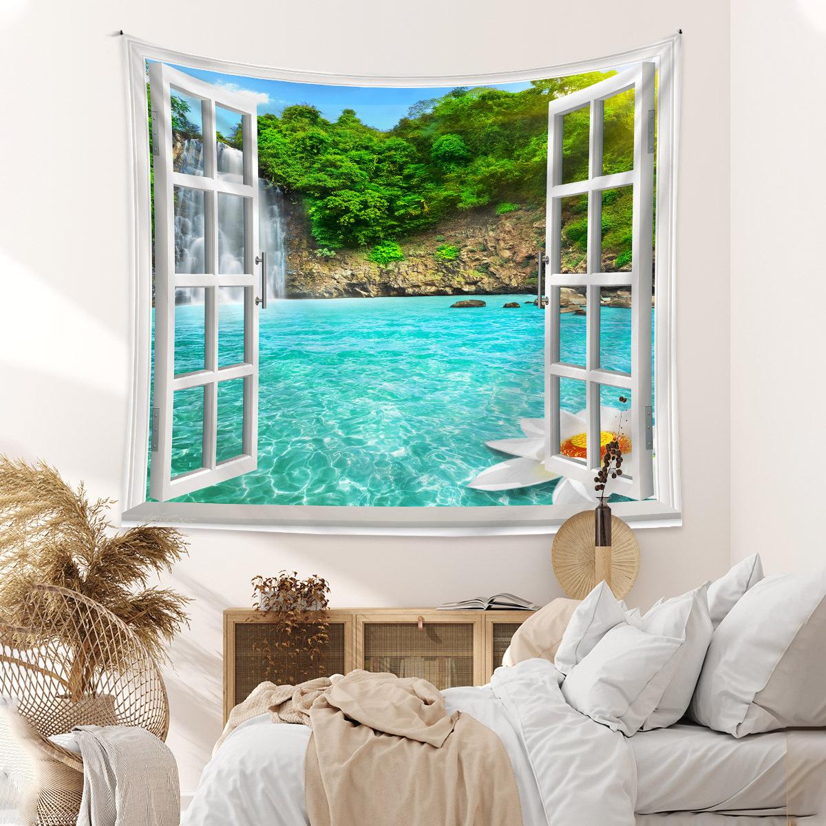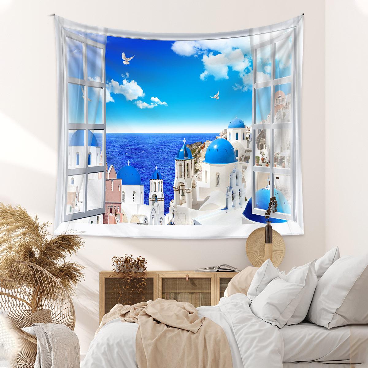 Tapiz transfronterizo para el hogar, tapiz bohemio, decoración de habitación, tela colgante, fondo de tela, tapiz de paisaje con viento.