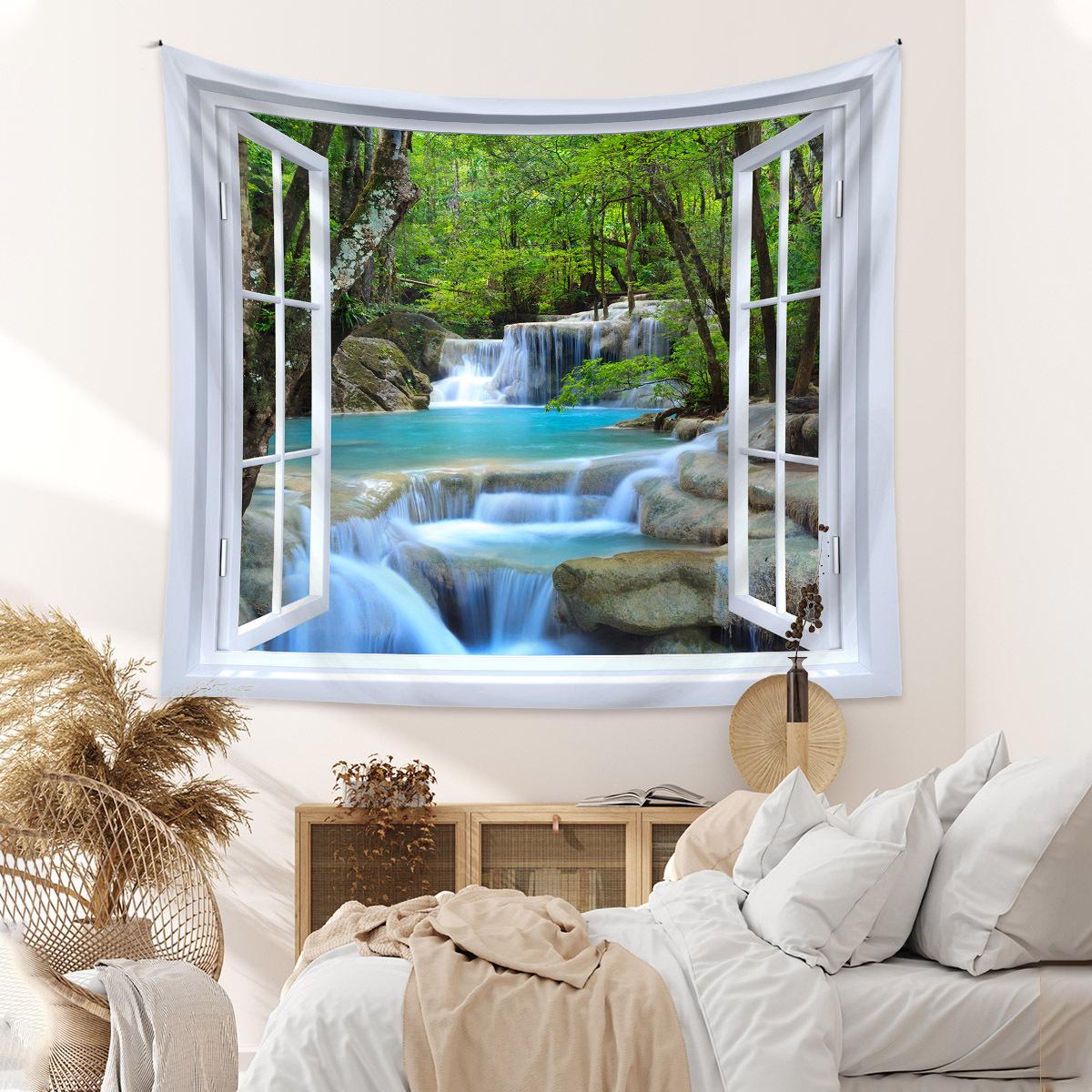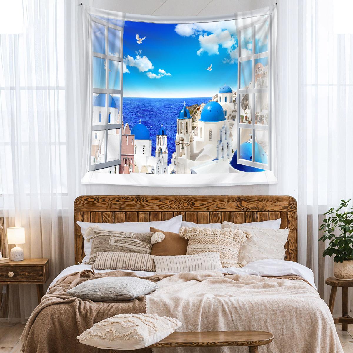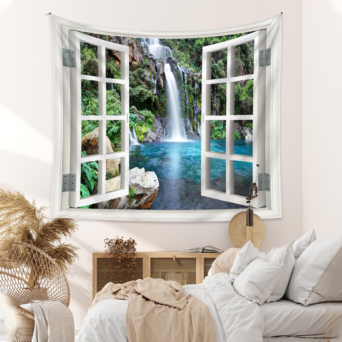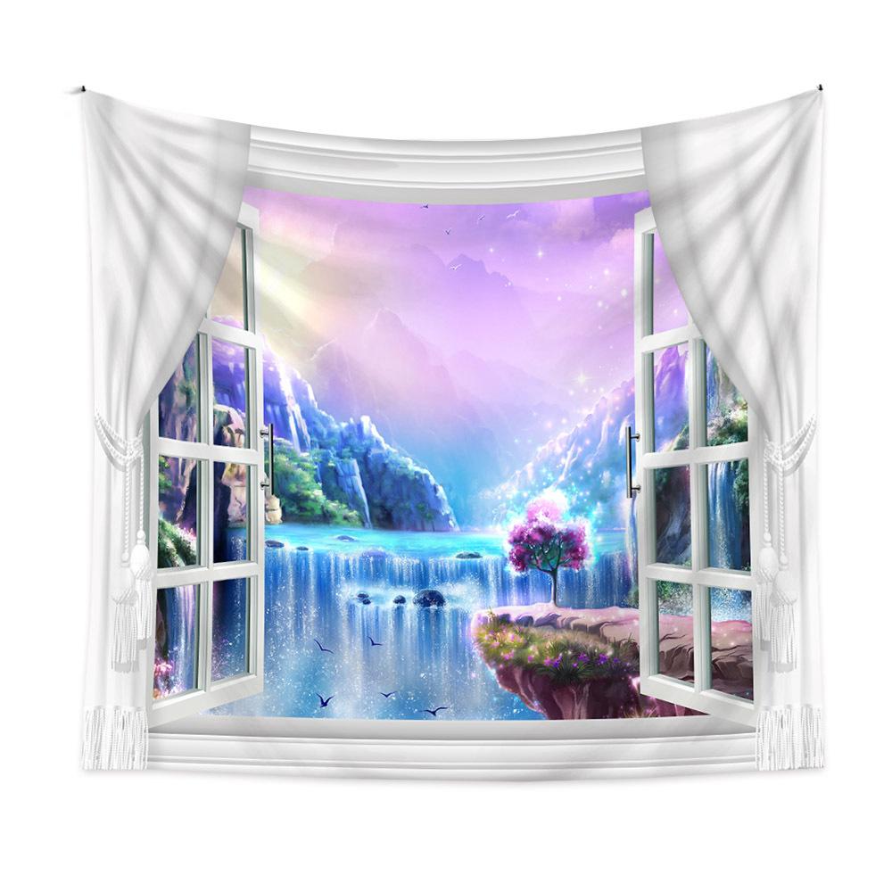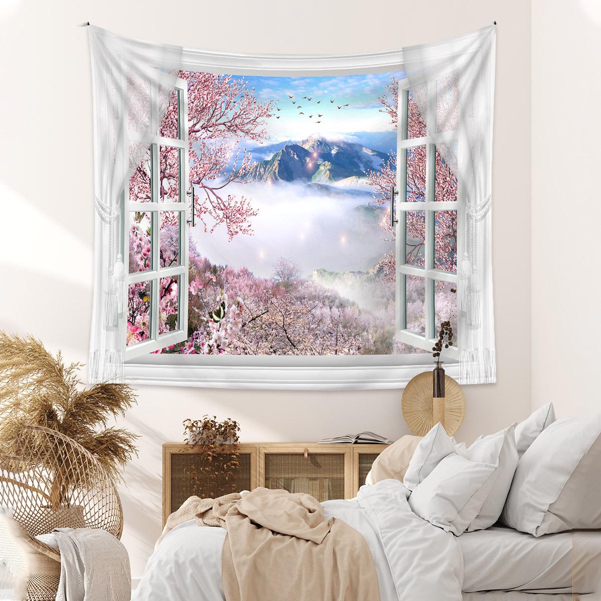 Tapiz transfronterizo para el hogar, tapiz bohemio, decoración de habitación, tela colgante, fondo de tela, tapiz de paisaje con viento.