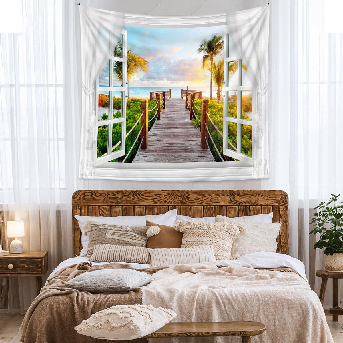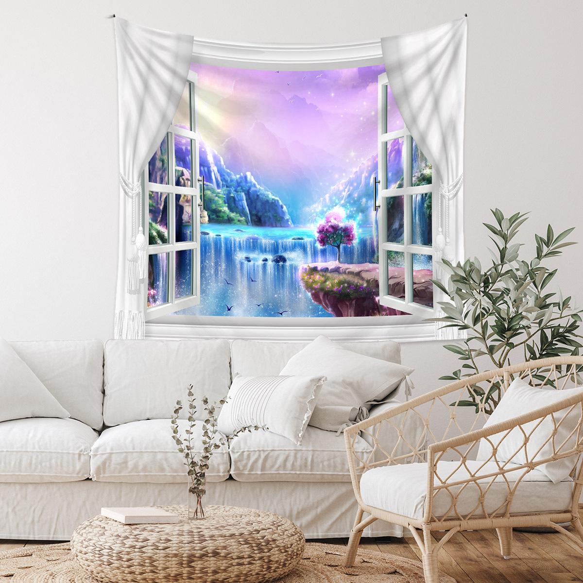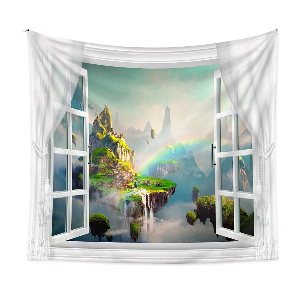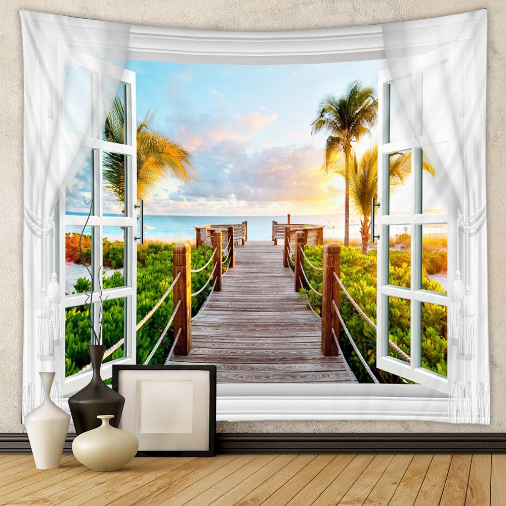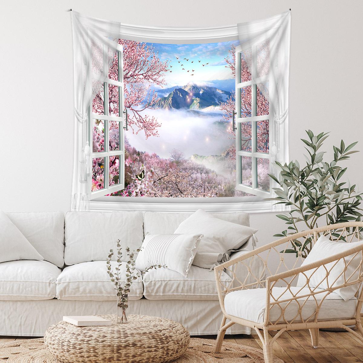 Tapiz transfronterizo para el hogar, tapiz bohemio, decoración de habitación, tela colgante, fondo de tela, tapiz de paisaje con viento.