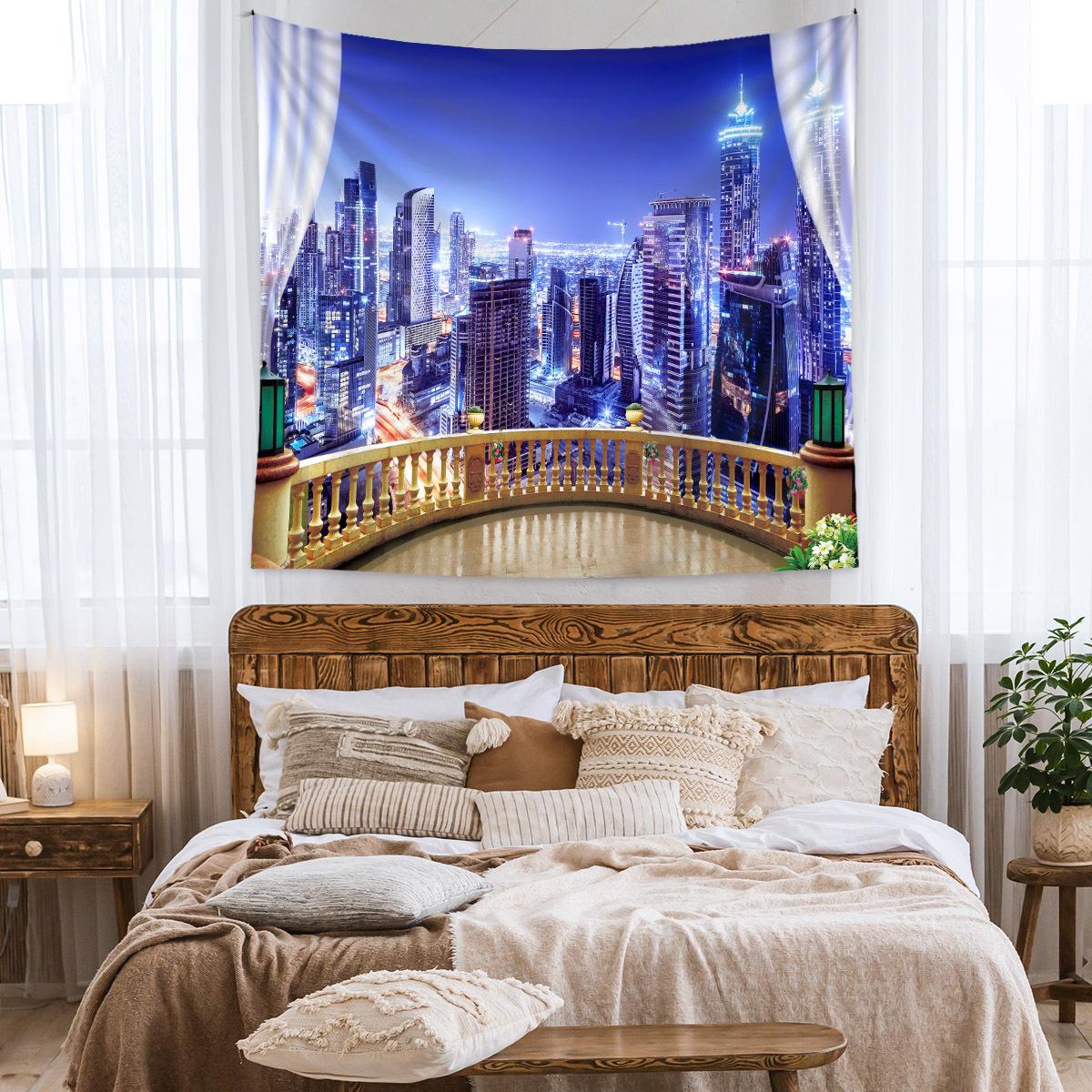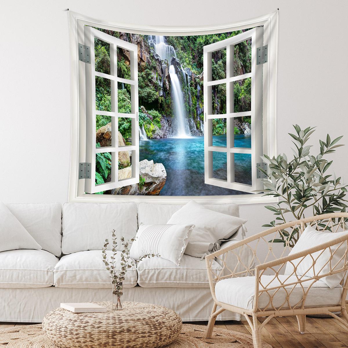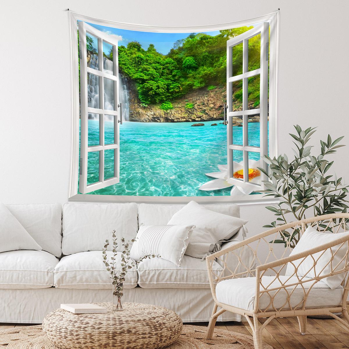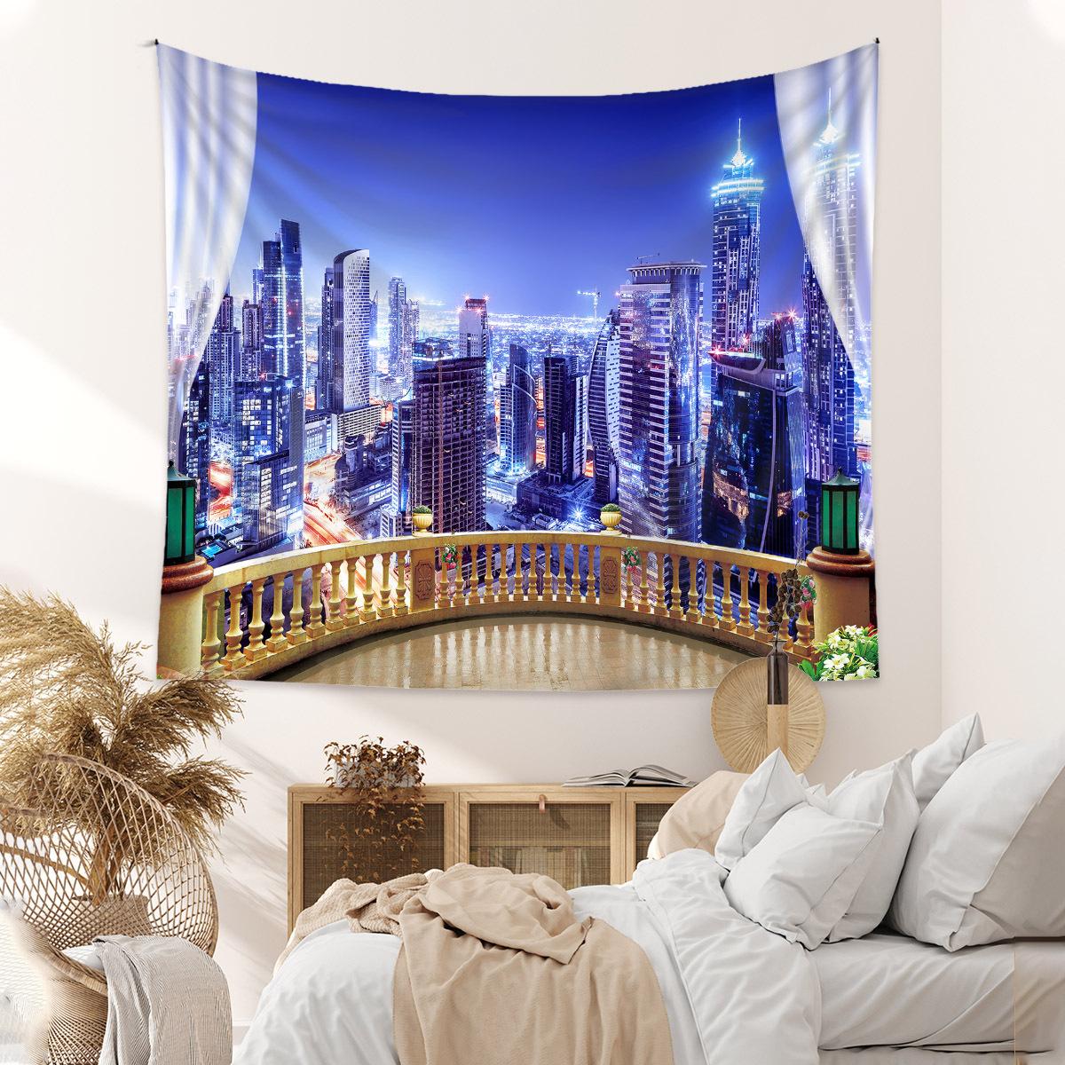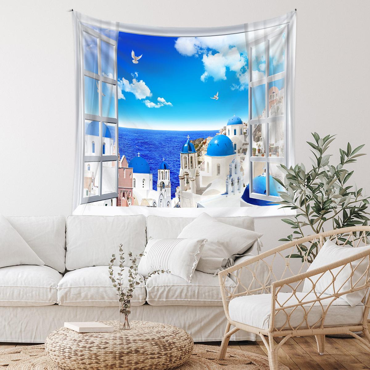 Tapiz transfronterizo para el hogar, tapiz bohemio, decoración de habitación, tela colgante, fondo de tela, tapiz de paisaje con viento.