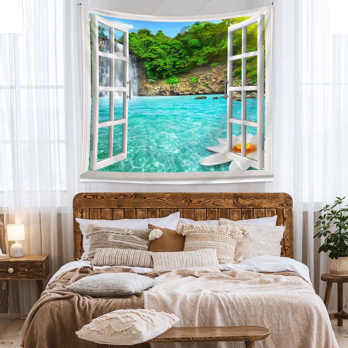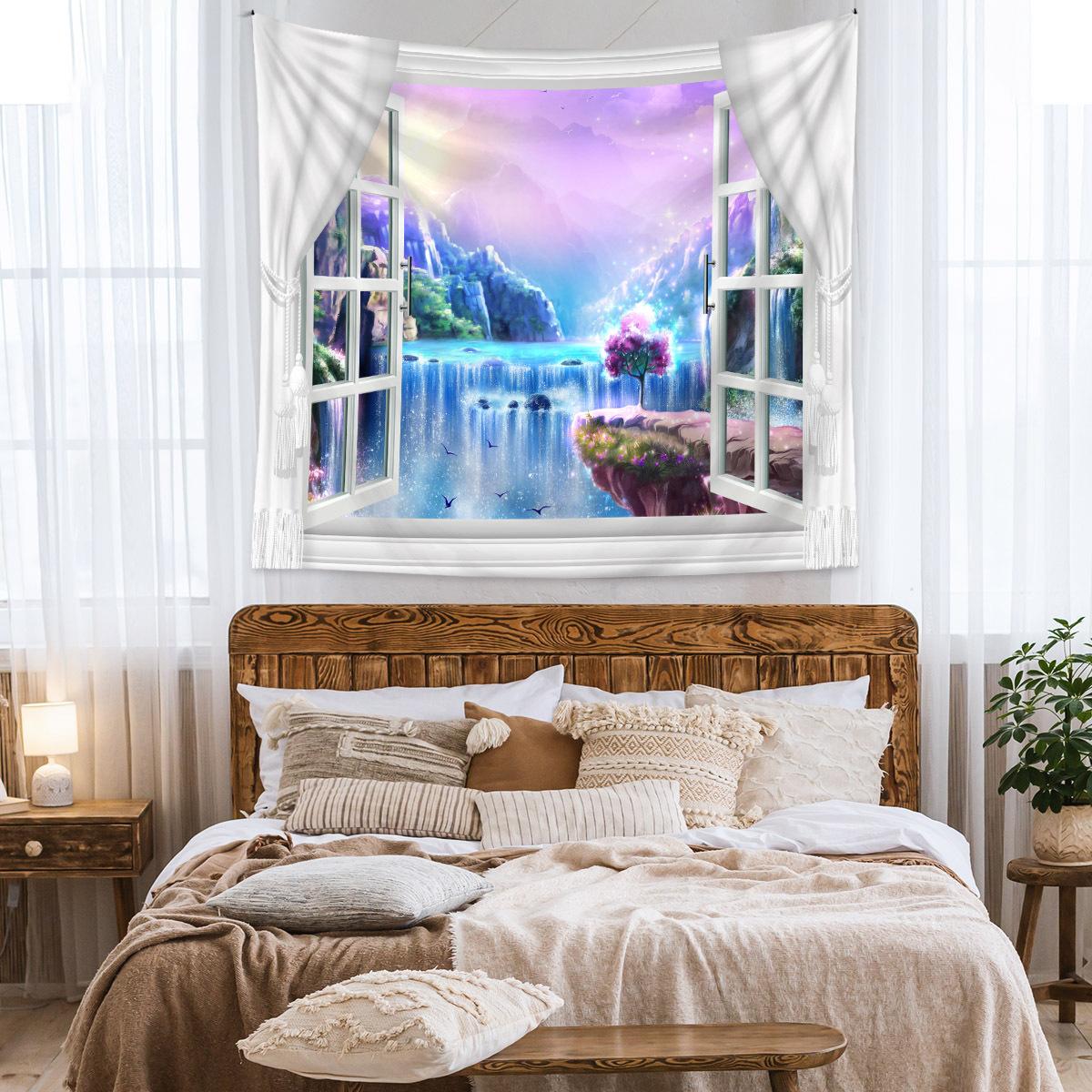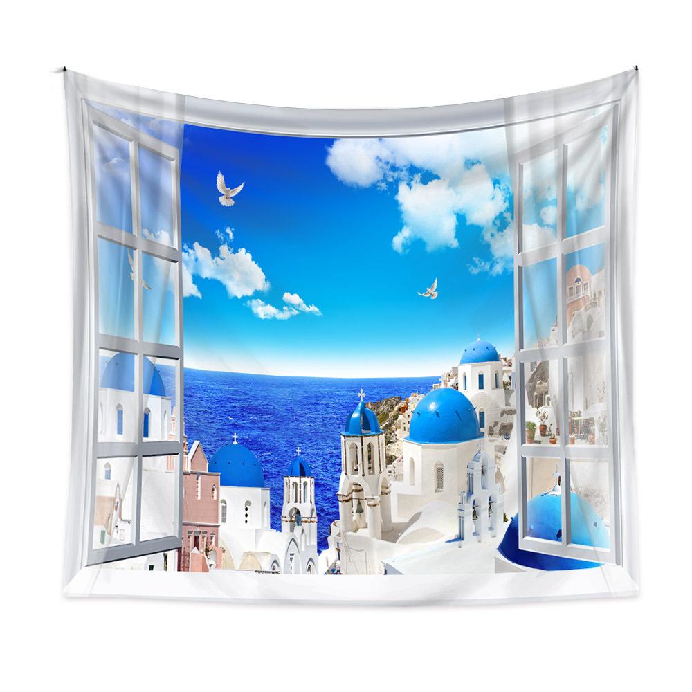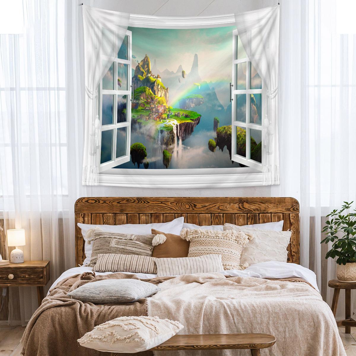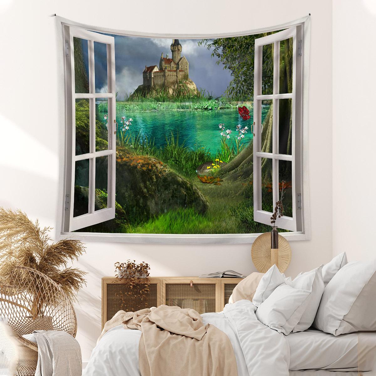 Tapiz transfronterizo para el hogar, tapiz bohemio, decoración de habitación, tela colgante, fondo de tela, tapiz de paisaje con viento.