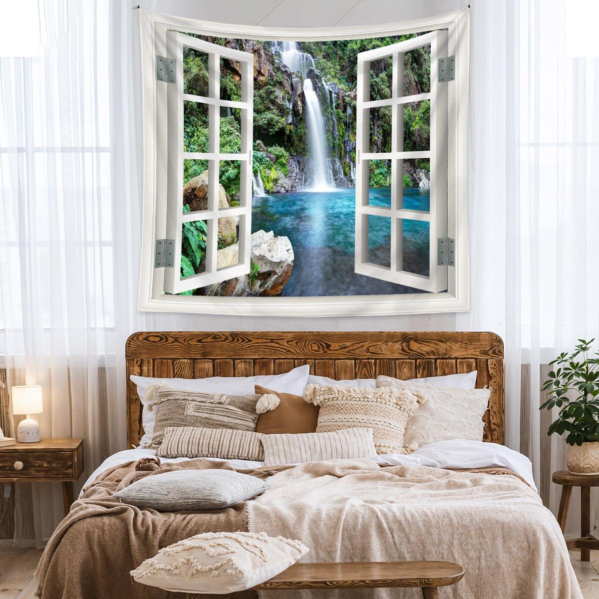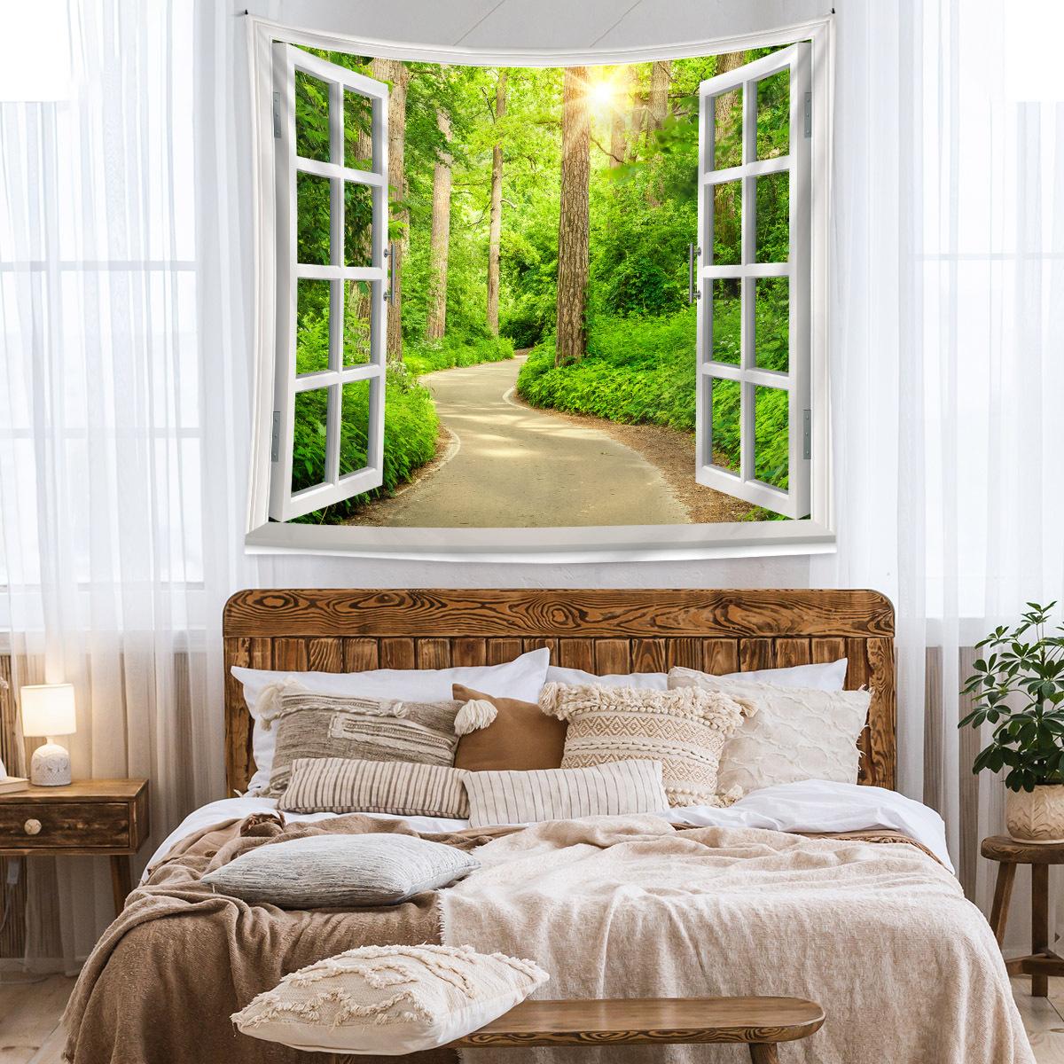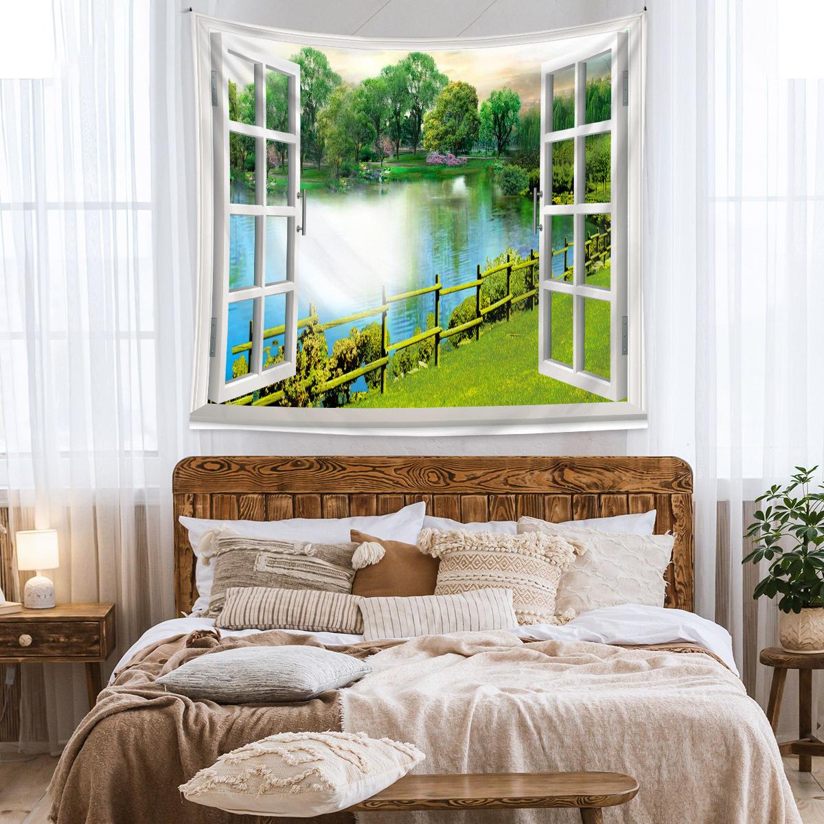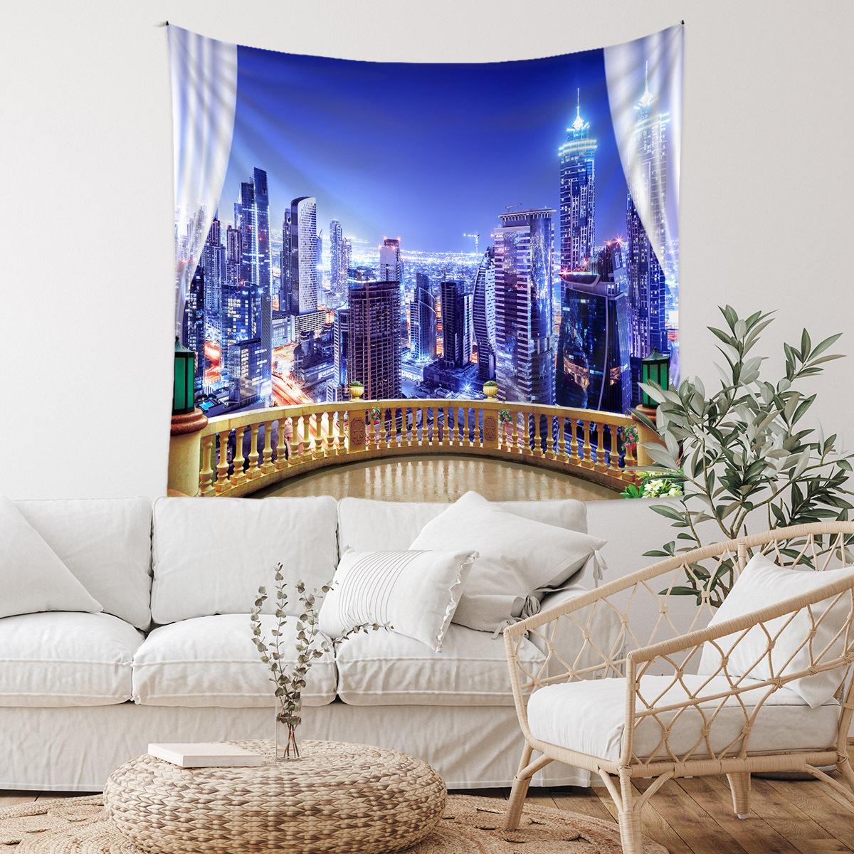 Tapiz transfronterizo para el hogar, tapiz bohemio, decoración de habitación, tela colgante, fondo de tela, tapiz de paisaje con viento.