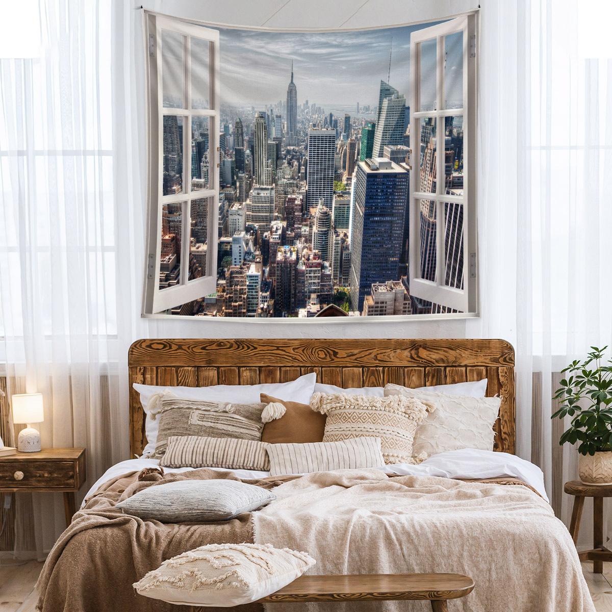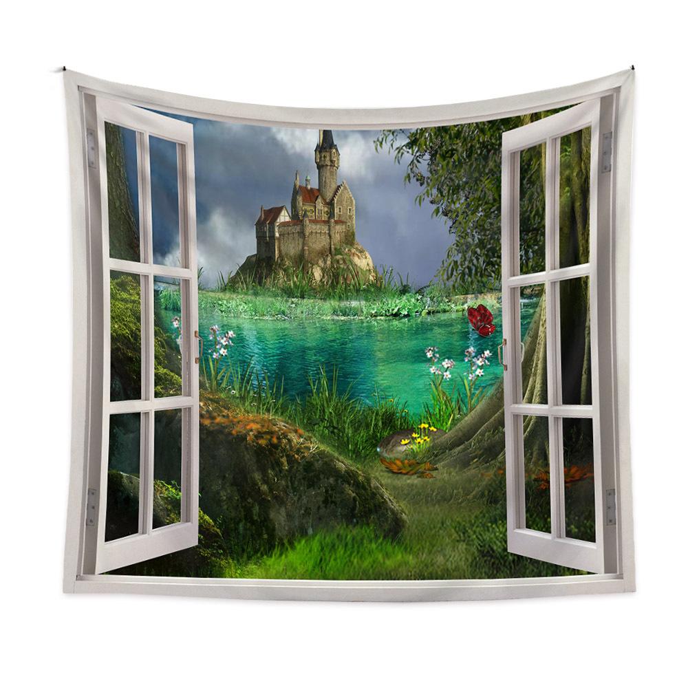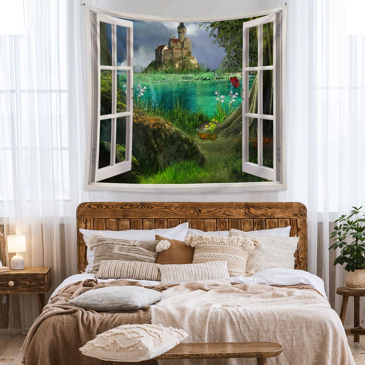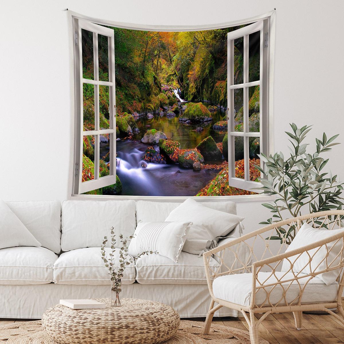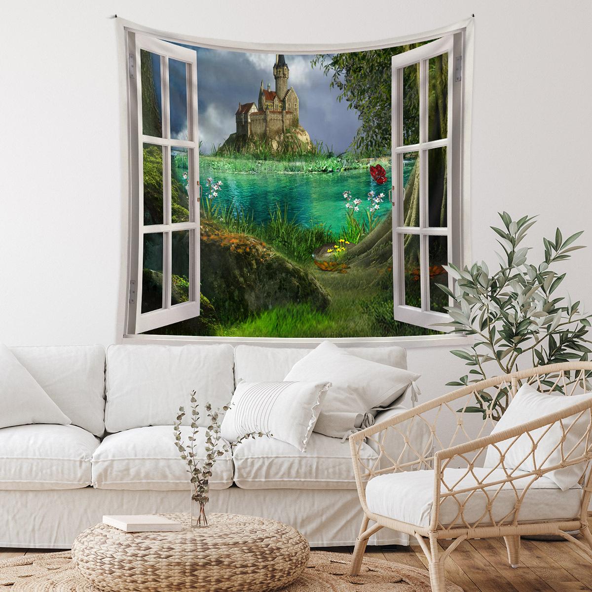 Tapiz transfronterizo para el hogar, tapiz bohemio, decoración de habitación, tela colgante, fondo de tela, tapiz de paisaje con viento.