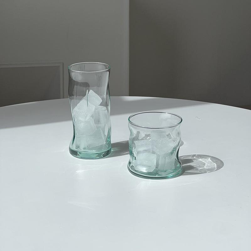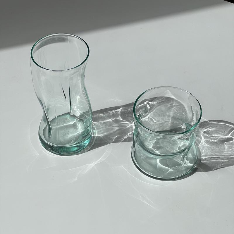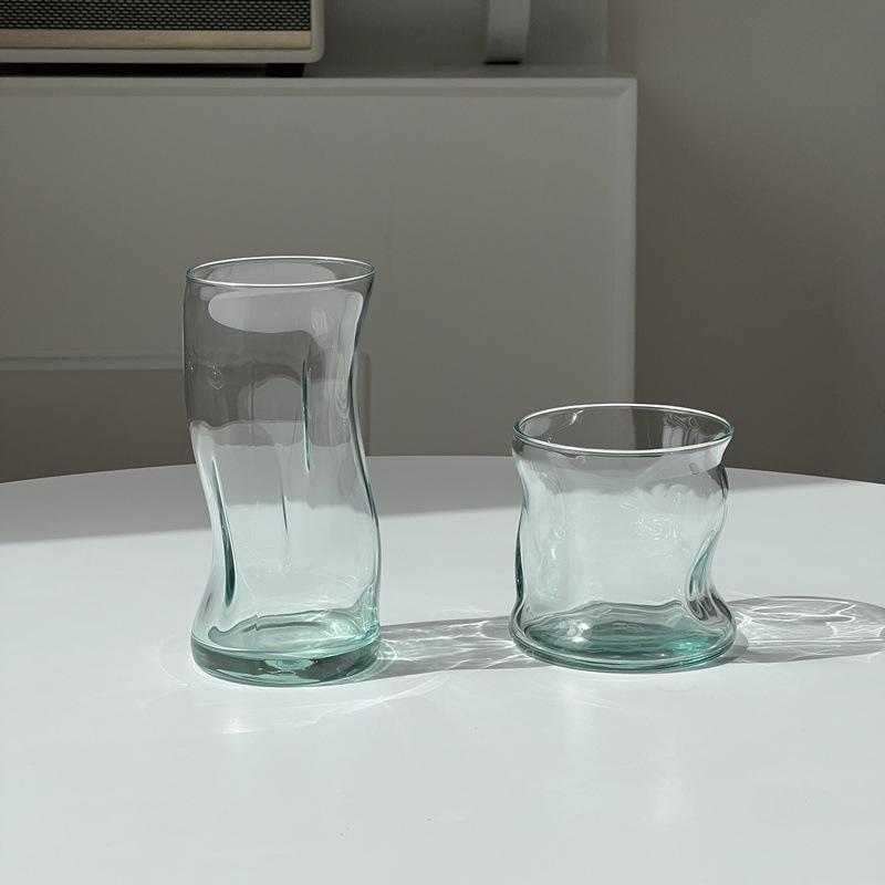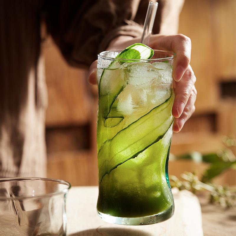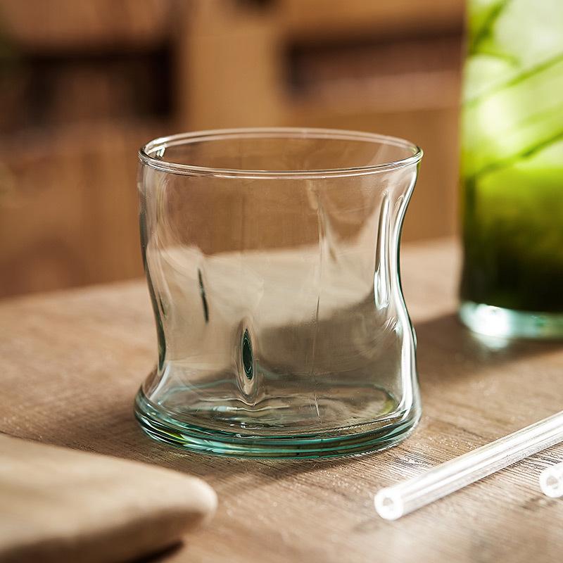 Vaso de Agua de Vidrio Verde Antiguo Medio para el Hogar con Giro Irregular Vaso de Cerveza Vintage Vaso para Bebidas Frías Resistente al Calor Patrón Personalizado