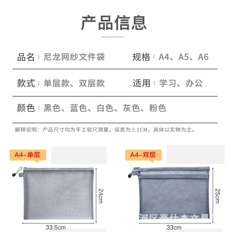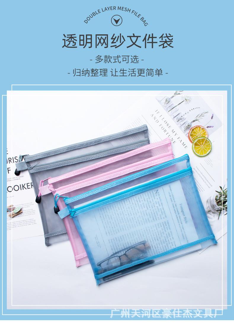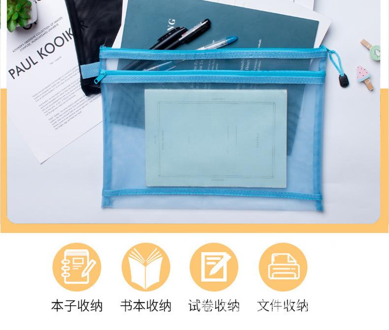 Bolsa de archivo de malla de nailon transparente de doble capa, bolsa para asignaturas de estudiante, almacenamiento de datos de hojas de examen, bolsa para bolígrafos, patrón imprimible