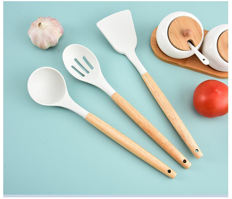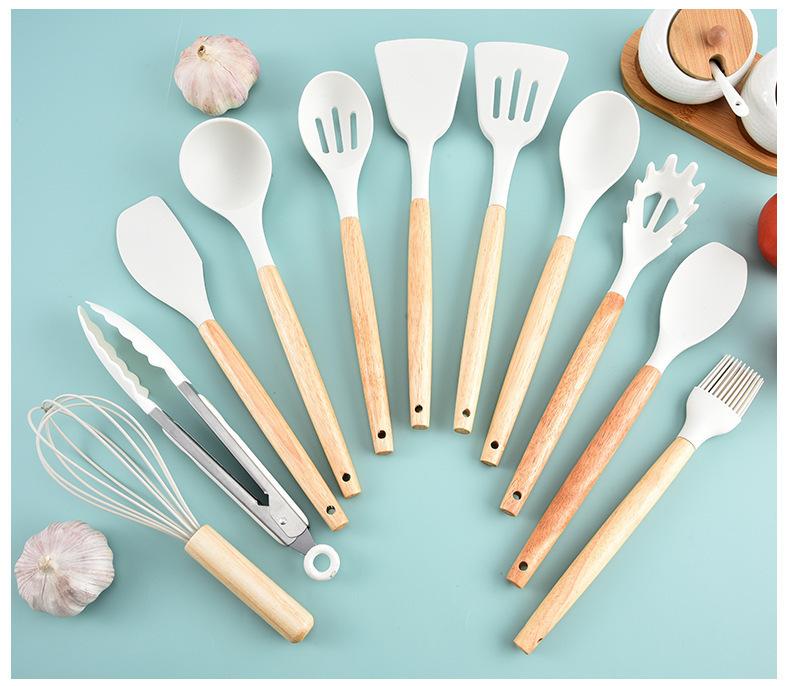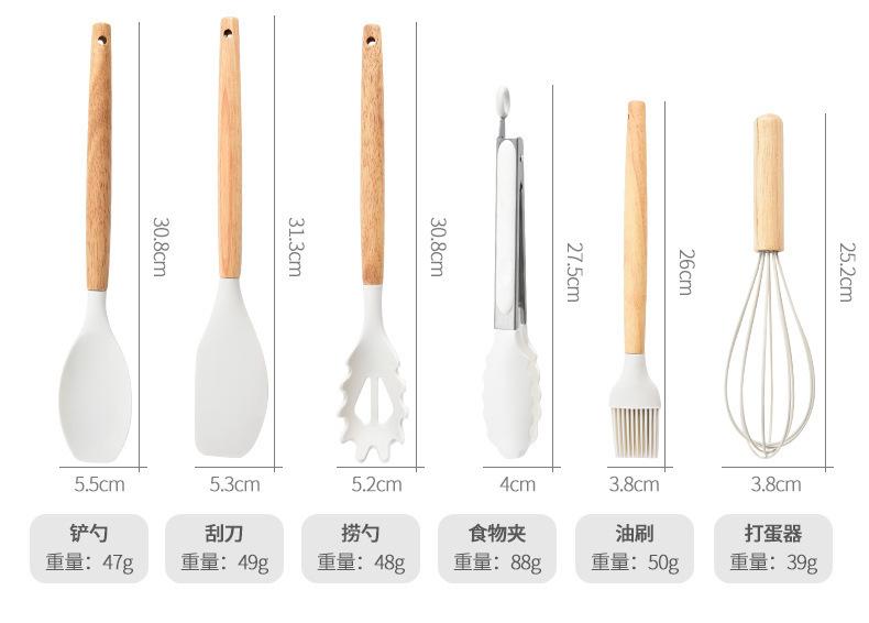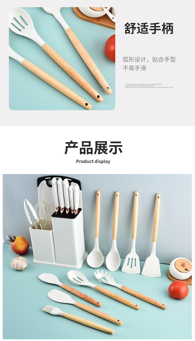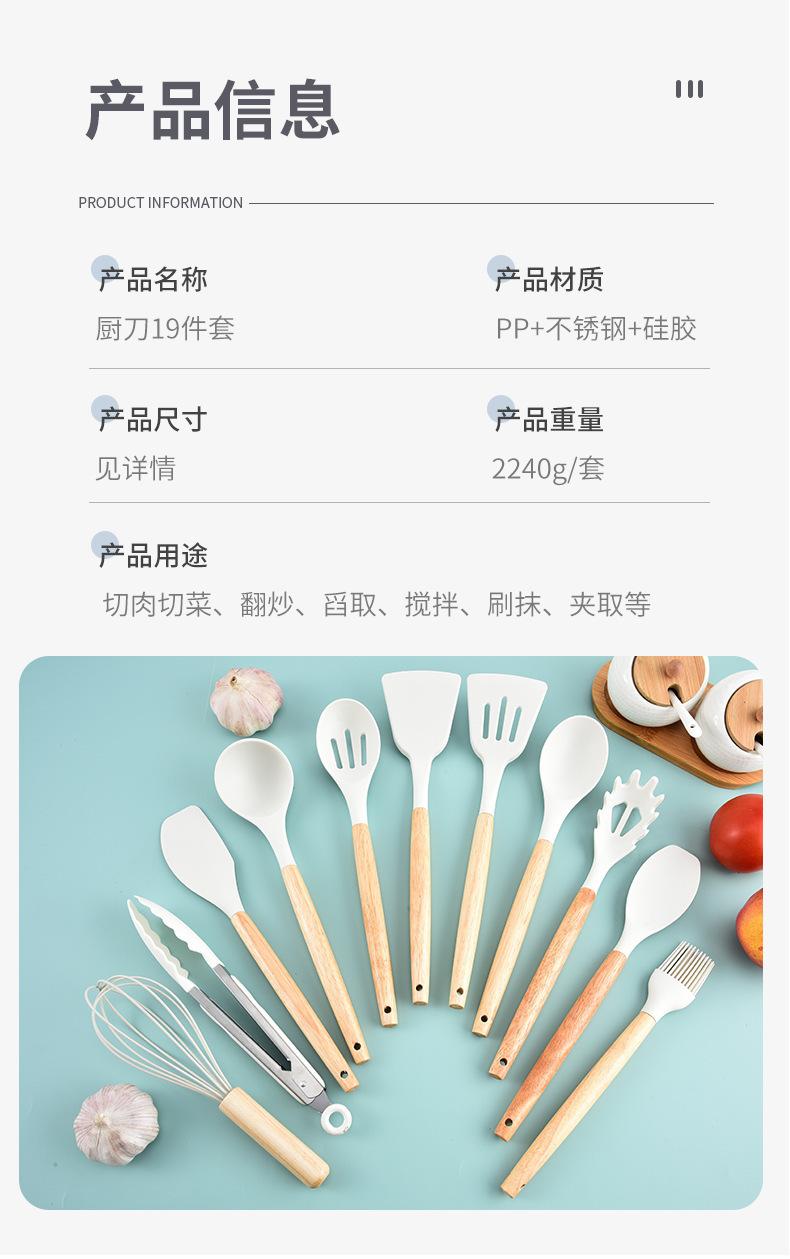 Utensilios de cocina de silicona transfronterizos, 19 piezas, juego de palas para cocinar resistentes a altas temperaturas, cucharas para sopa, cuchillos, tablas de cortar, herramientas de cocina