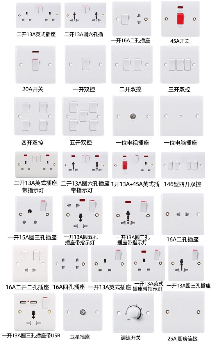 Panel de baquelita Tipo 146 Estándar británico Hong Kong Estándar británico cuadrado toma de corriente de pared de tres orificios 13A Enchufe británico con interruptor