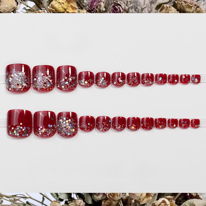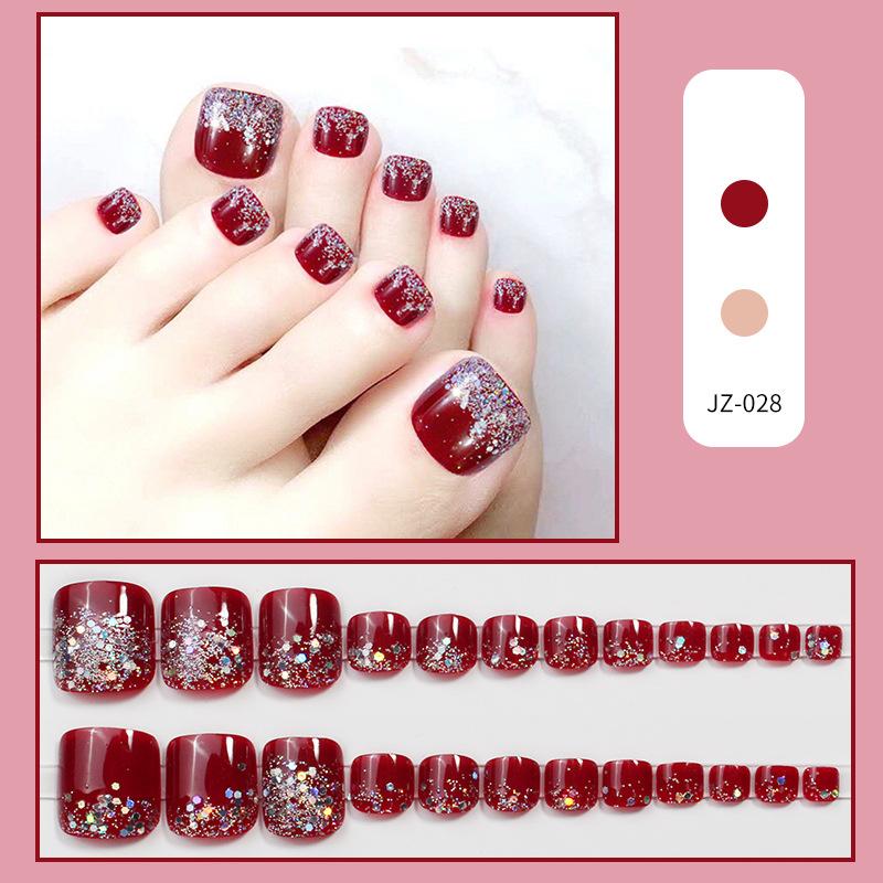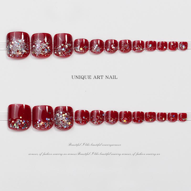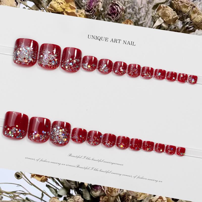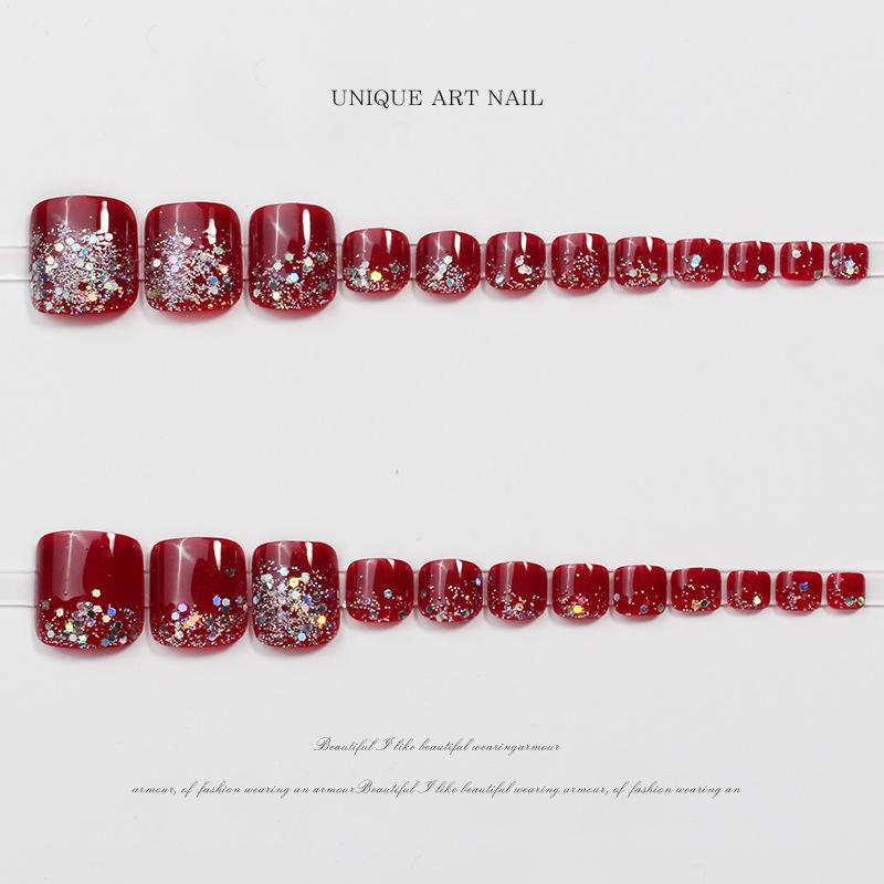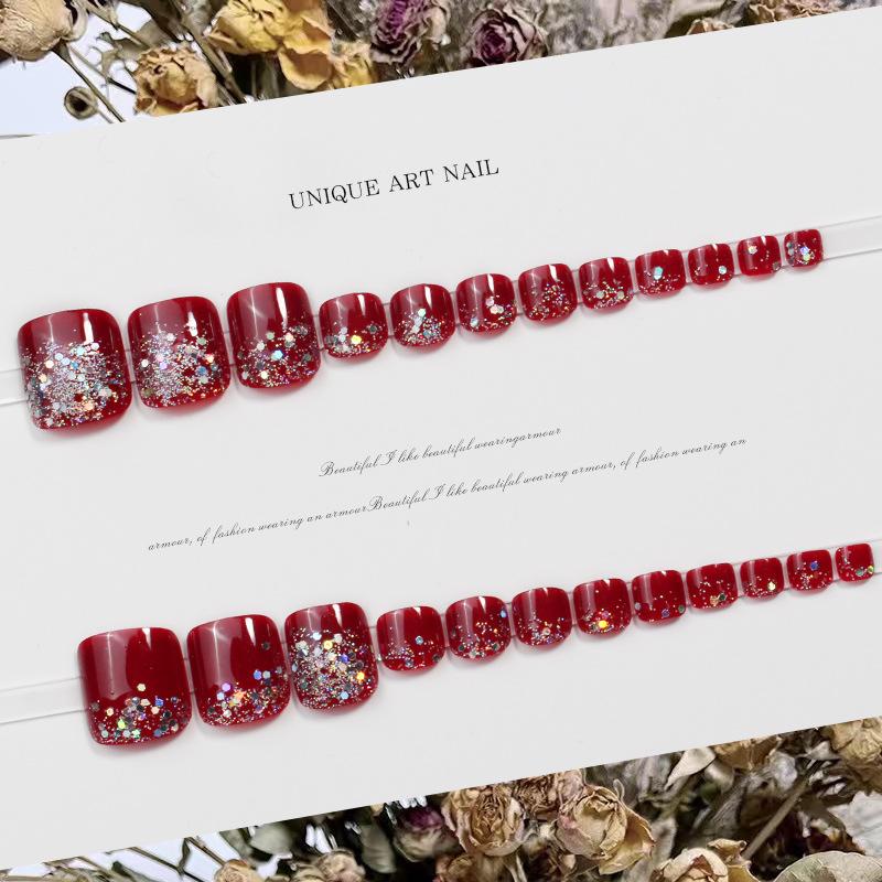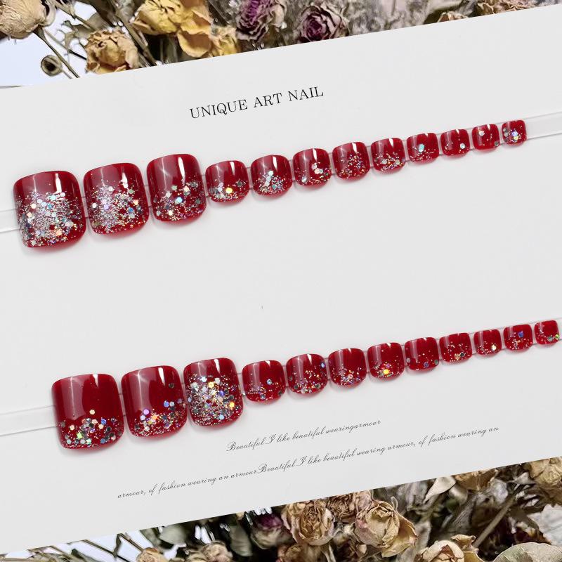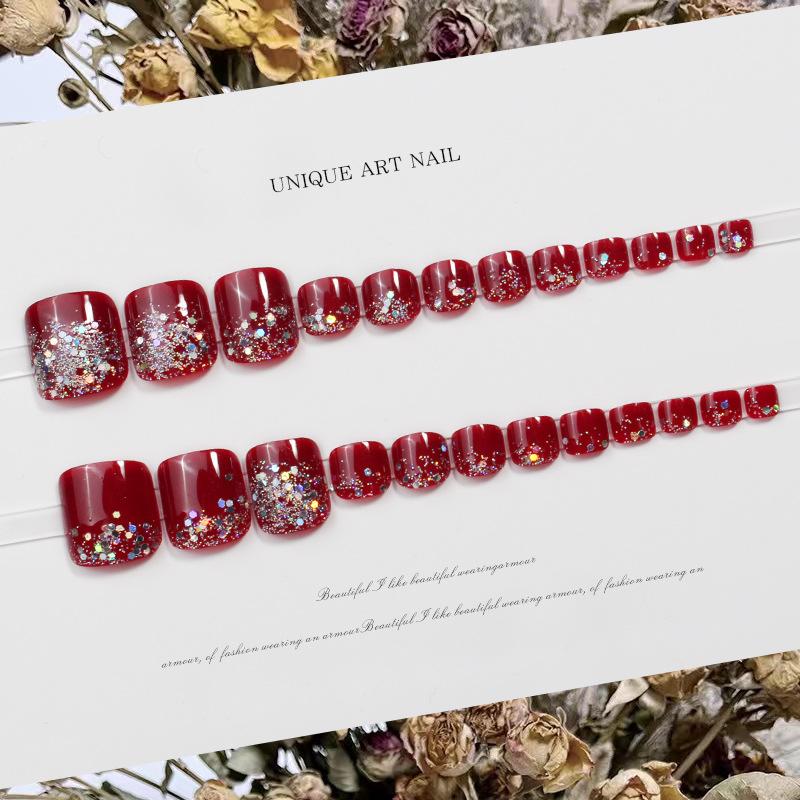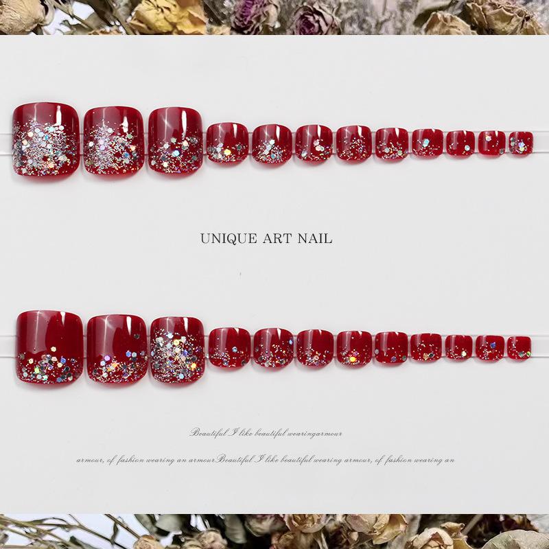 JZ-028 usar uña uña pieza de uña al por mayor parche de uña removible acabado de alto sentido hermoso flash rojo uñas de los pies