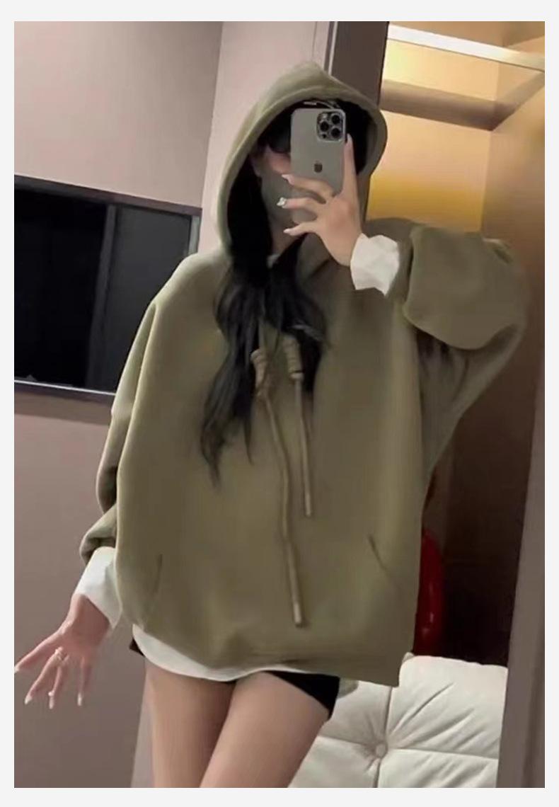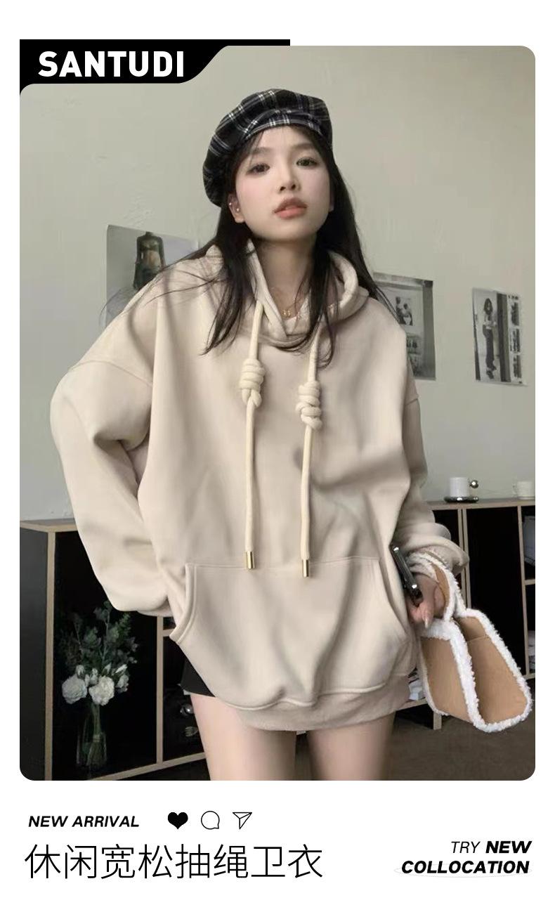 Sudadera con Capucha de Otoño e Invierno Pulóver Suelto Casual Versátil Top Manga Larga Talla Grande Sudadera Trendy para Mujer