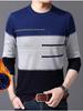 Nueva camiseta de manga larga con forro polar para hombre, gruesa, a rayas, juvenil, cómoda y casual, de otoño