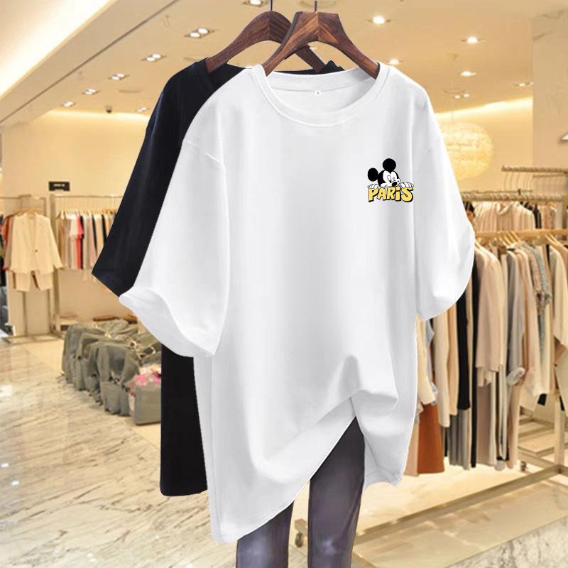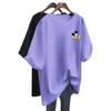 Camiseta de algodón de manga corta para mujer, nueva camiseta holgada de talla grande, de longitud media, a la moda, combina con todo, estilo occidental, de media manga, para verano, 2024