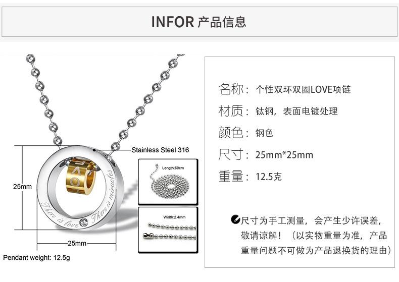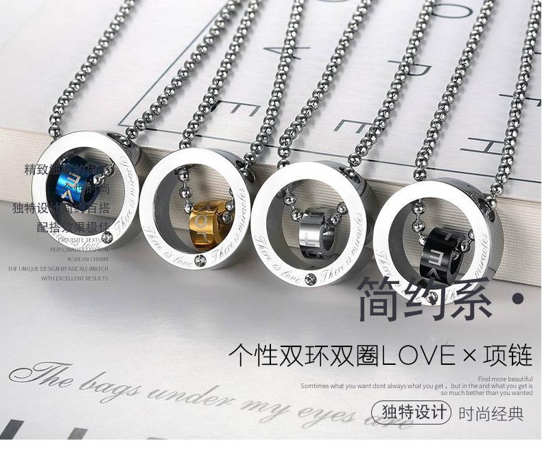 Compra Deseo transfronterizo Amazon nueva joyería caliente personalizada anillo doble anillo doble AMOR colgante collar de acero de titanio para hombre al por mayor en Joom.pro