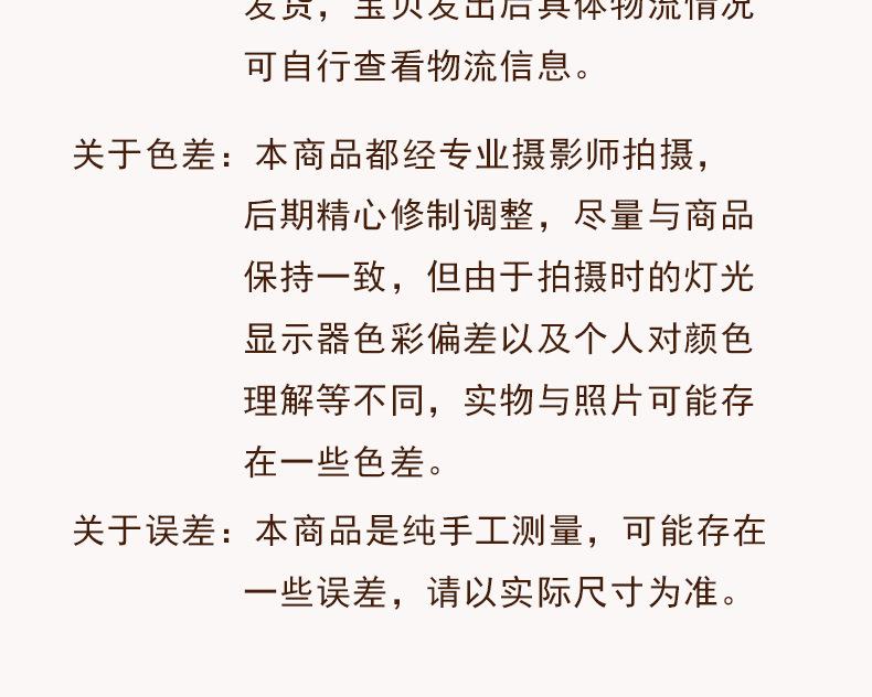 4. No se aceptarán devoluciones ni cambios a menos que se deban a problemas de calidad, como daños, suciedad, etc., u otros problemas de calidad graves que sean evidentes e indiscutibles.Problemas de no calidad como: manchas muy pequeñas, algunos rastros, defectos artificiales, diferencia de color causada por la pantalla de la computadora (los colores serán diferentes en diferentes pantallas), no me gusta, es diferente de lo que imaginé, manoLos problemas causados por el juicio subjetivo del comprador, como los malos sentimientos, no se consideran problemas de calidad.