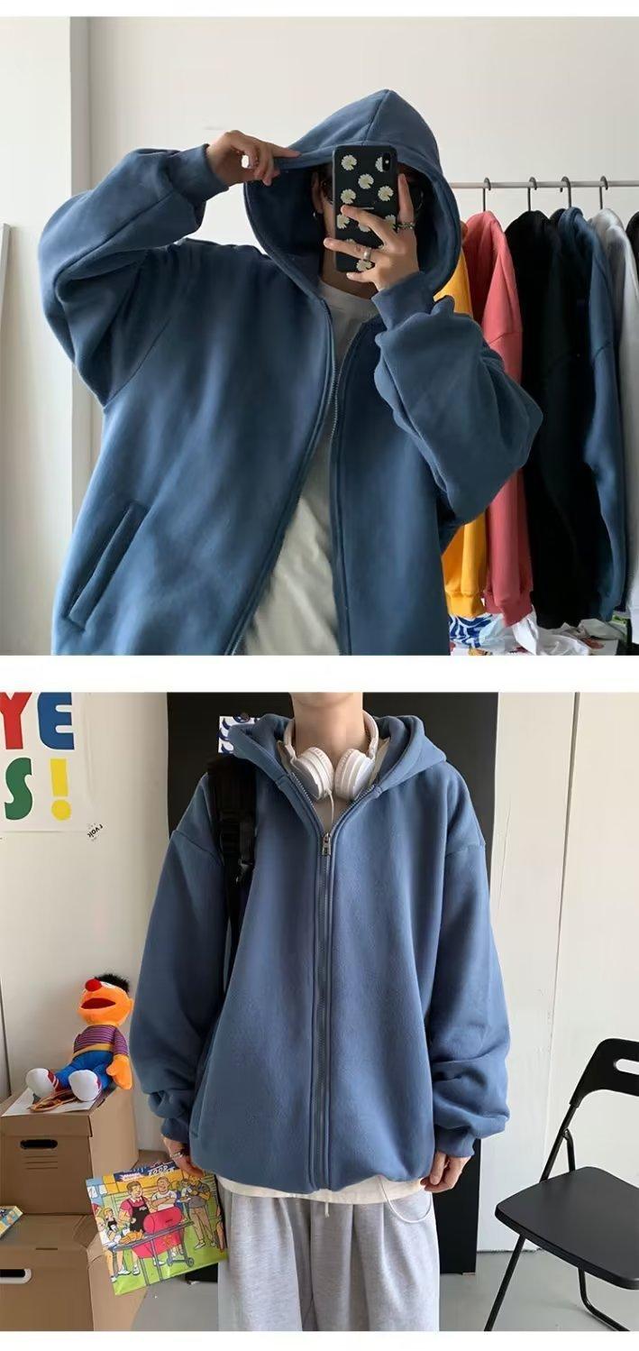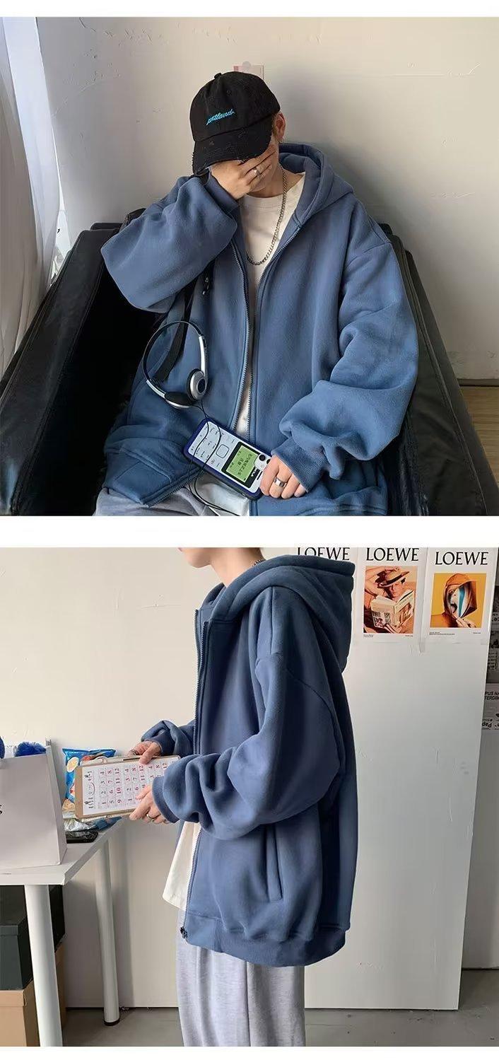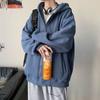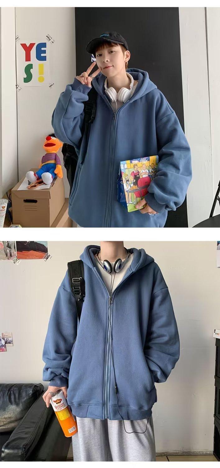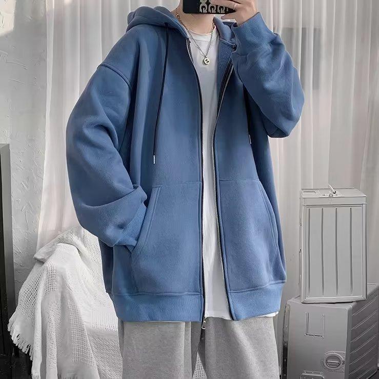 Suéter de Otoño de Color Sólido para Combinar con Todo para Hombre Holgado Estilo Coreano Casual Perezoso Cárdigan Chaqueta con Capucha para Estudiantes