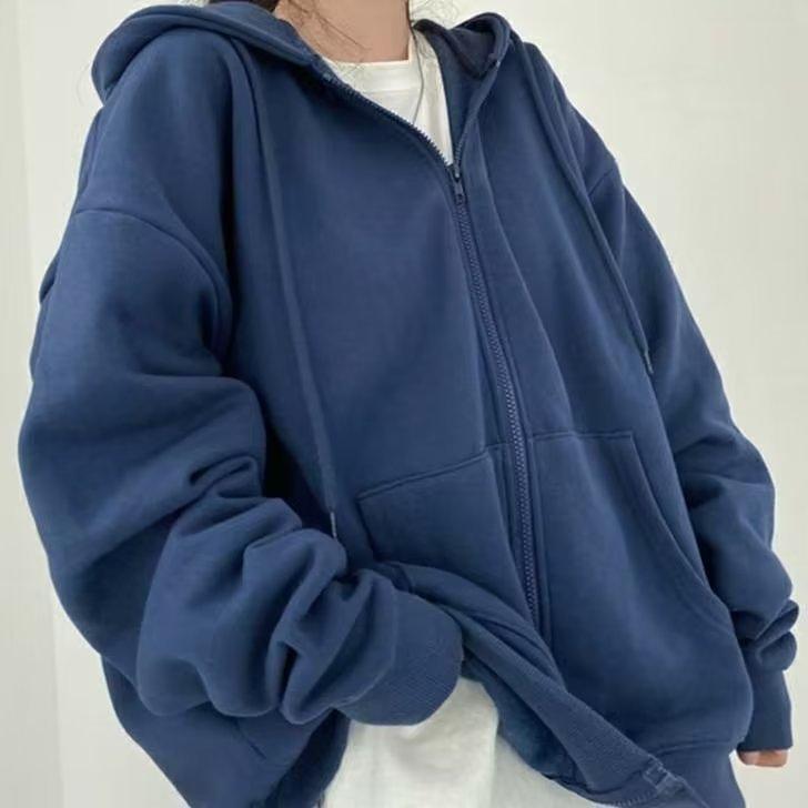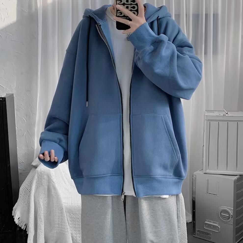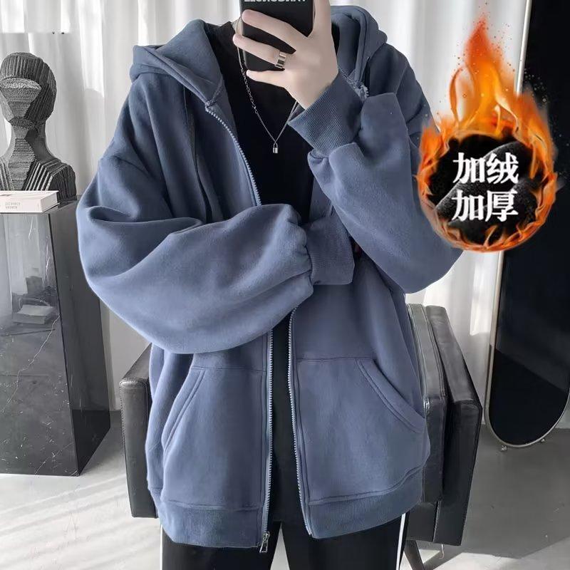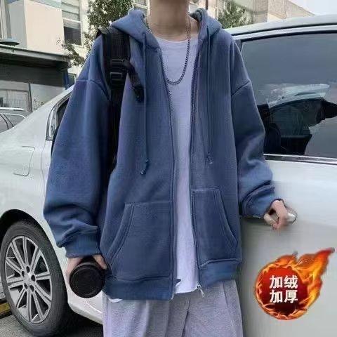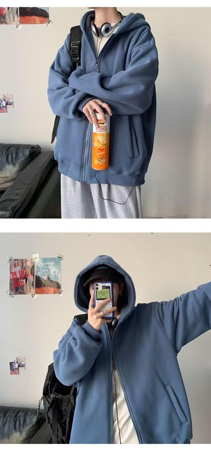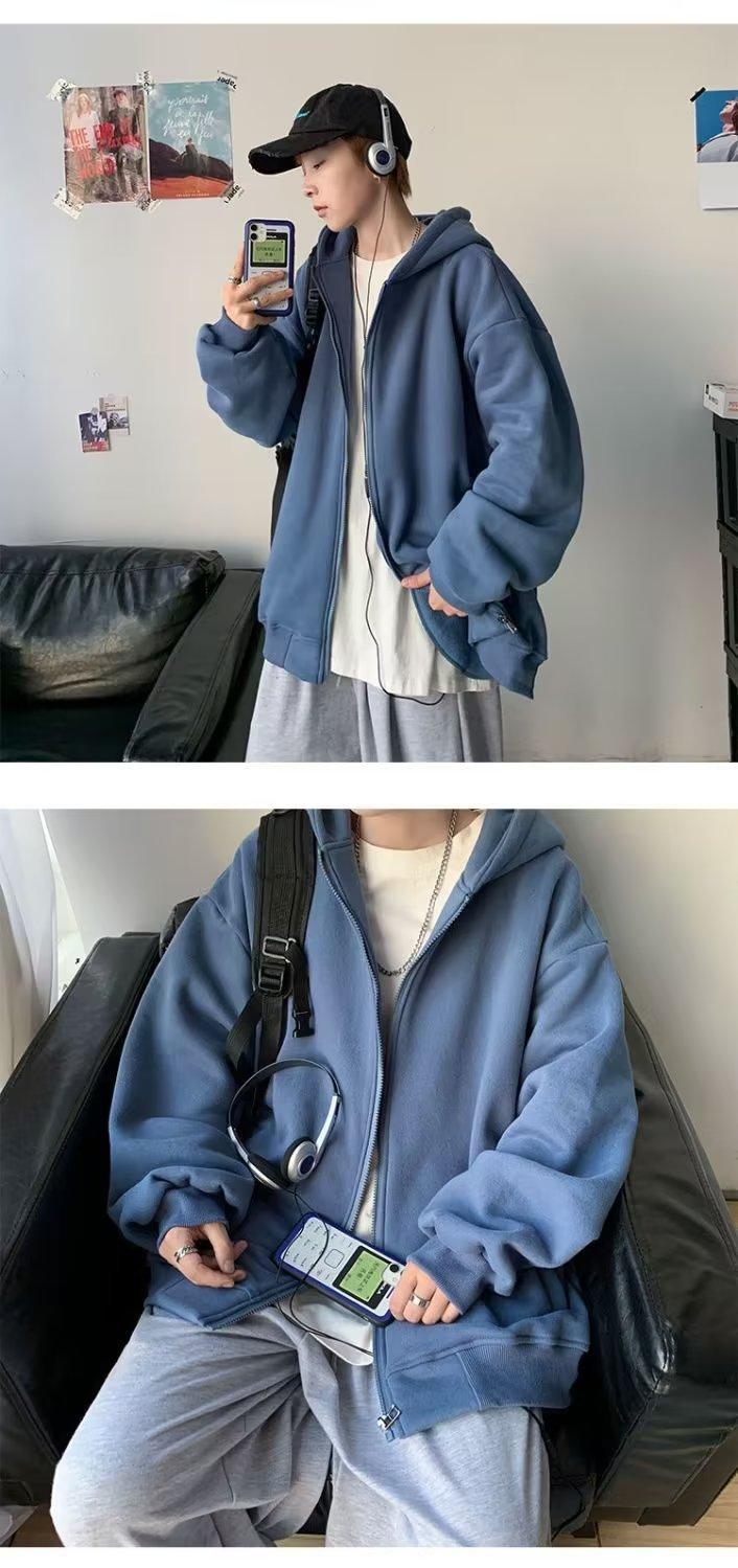 Suéter de Otoño de Color Sólido para Combinar con Todo para Hombre Holgado Estilo Coreano Casual Perezoso Cárdigan Chaqueta con Capucha para Estudiantes