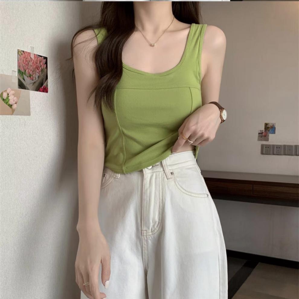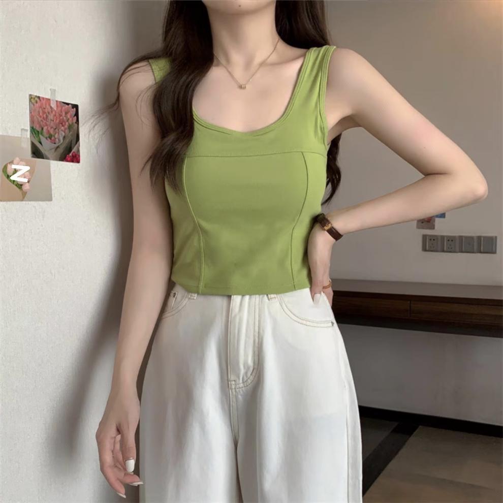 Chaleco con correa de belleza y almohadilla para el pecho de color sólido que combina con todo, estilo coreano, para mujer, ropa interior nueva, ropa exterior, top ajustado sin mangas
