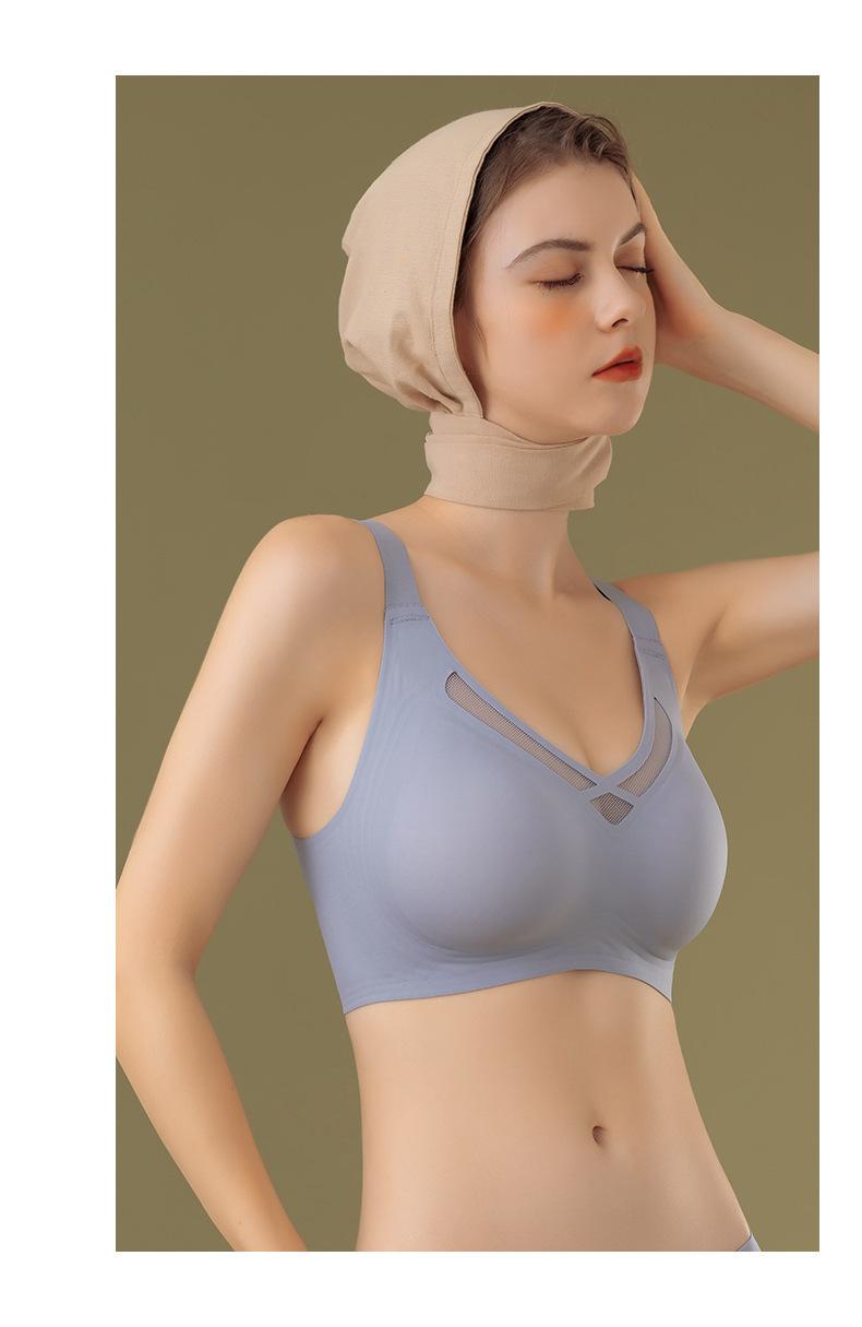 Sujetador de talla grande con tira de gelatina sin costuras, pecho grande, ropa interior pequeña brillante, ajustable lateralmente, anti-flacidez, grosor medio-delgado
