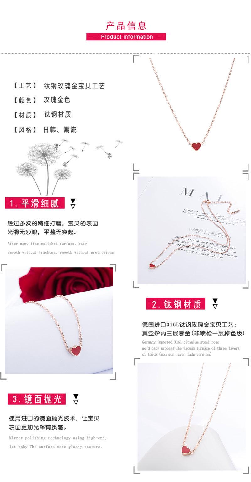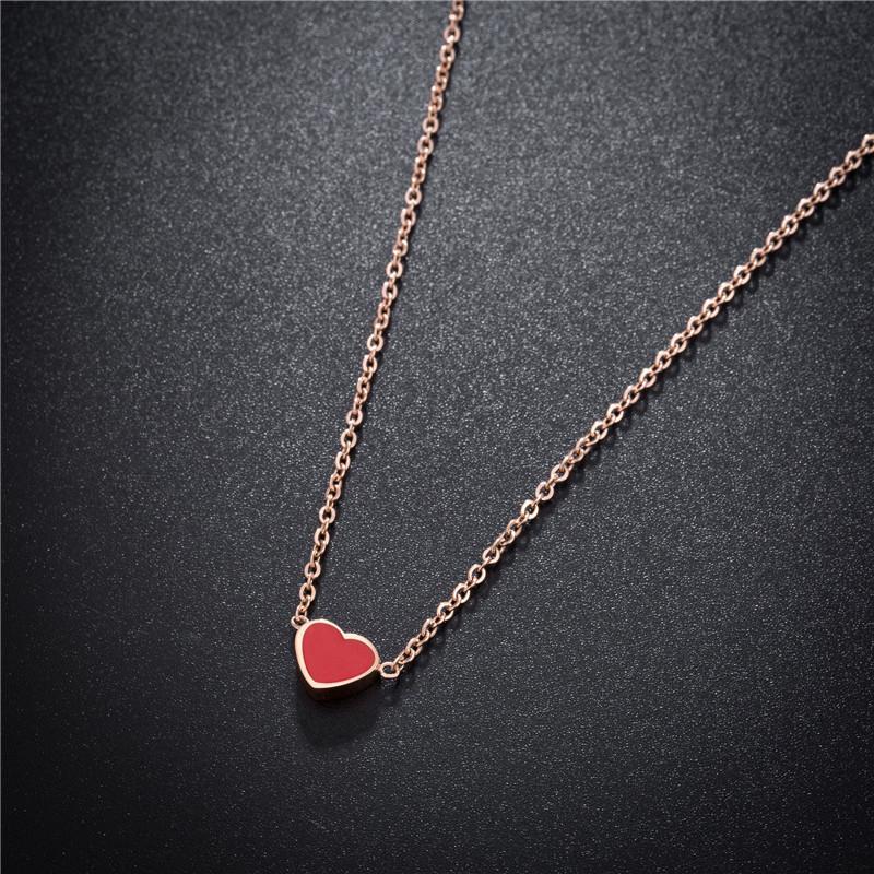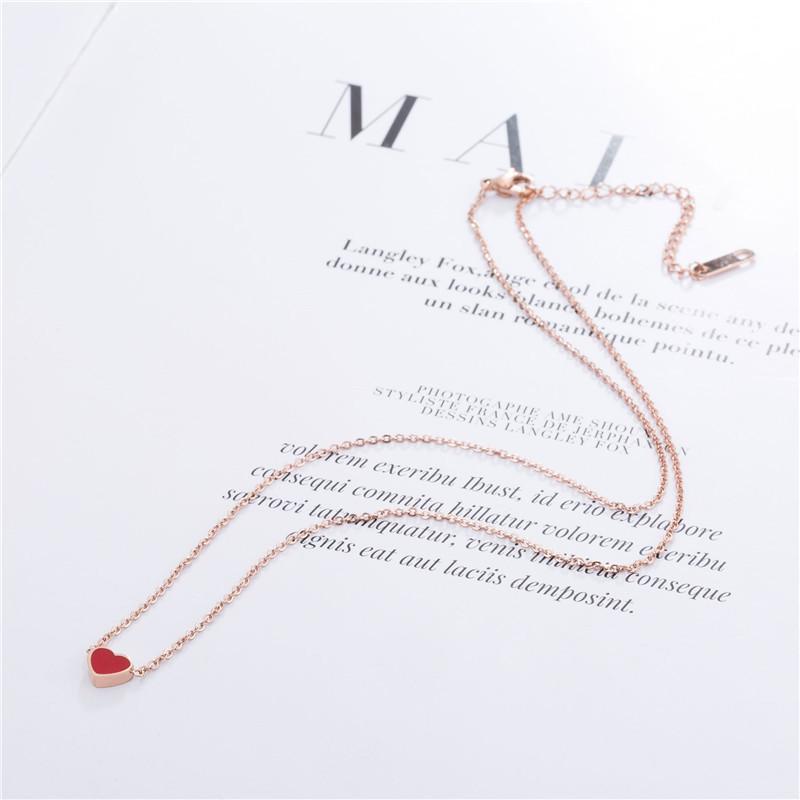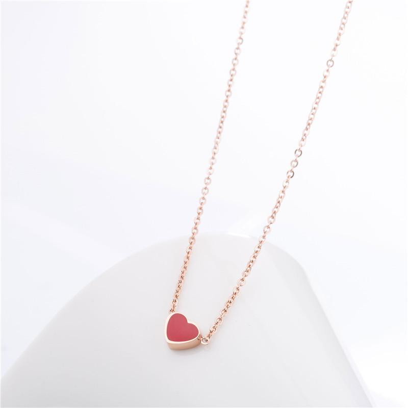 Nuevo collar de acero de titanio con forma de corazón rojo para mujer, cadena de clavícula de oro rosa con mini corazón, joyería de moda coreana al por mayor