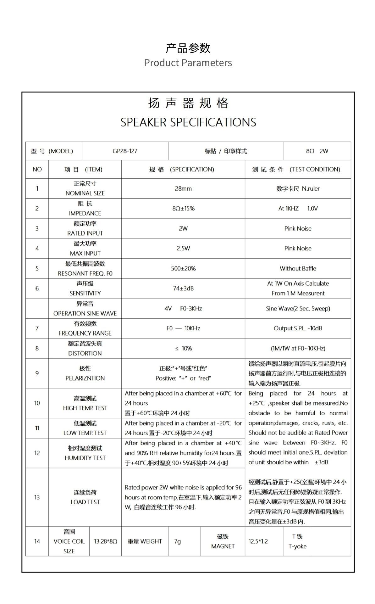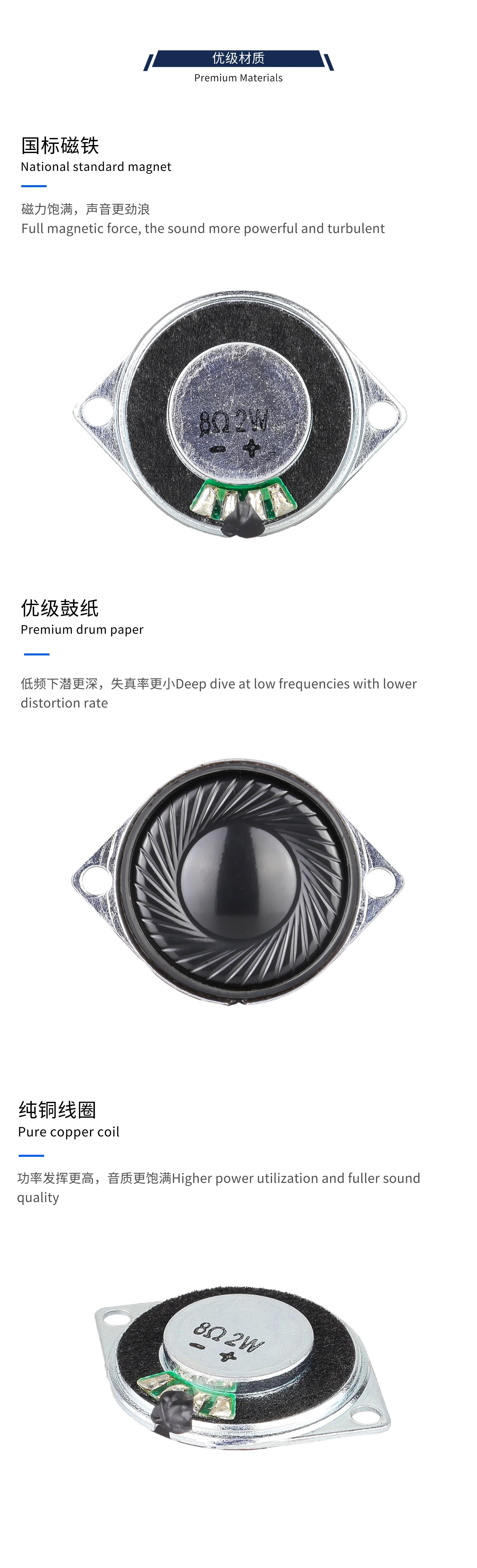 Altavoz pequeño magnético interno de 28 mm 8 ohmios 2 vatios Impermeable Orificio de montaje binaural Imán de neodimio fuerte Ultrafino Altavoz de trigo