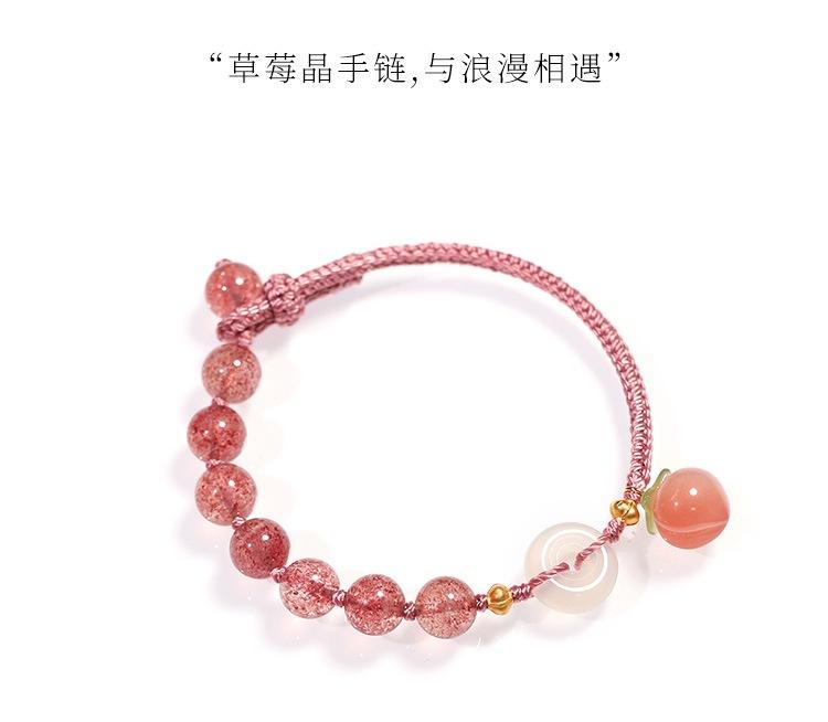 Pulsera de Cristal de Fresa Natural para Mujer Pulsera de Flor de Durazno Calcedonia Ágata Fuente de Sal Melocotón Melocotón Pulsera de Seguridad