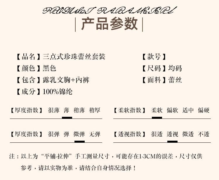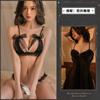 [2 pieces] black three-point Pearl suit + black nightdress (send black stockings)