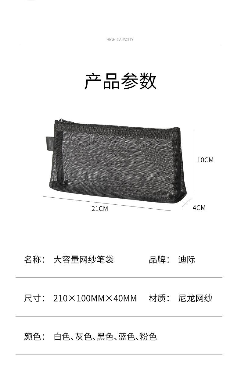 Bolsa de Malla Transparente Estuche Tridimensional de Gran Capacidad Bolsa de Almacenamiento de Artículos de Papelería de Malla de Nailon Bolsa Portátil para Lápices para Exámenes de Estudiantes