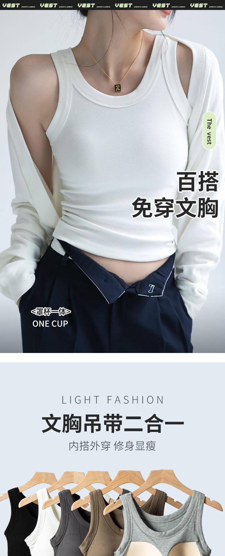 Camisola interior con base roscada de modal con almohadilla para el pecho para mujer, chaqueta exterior de verano de color liso