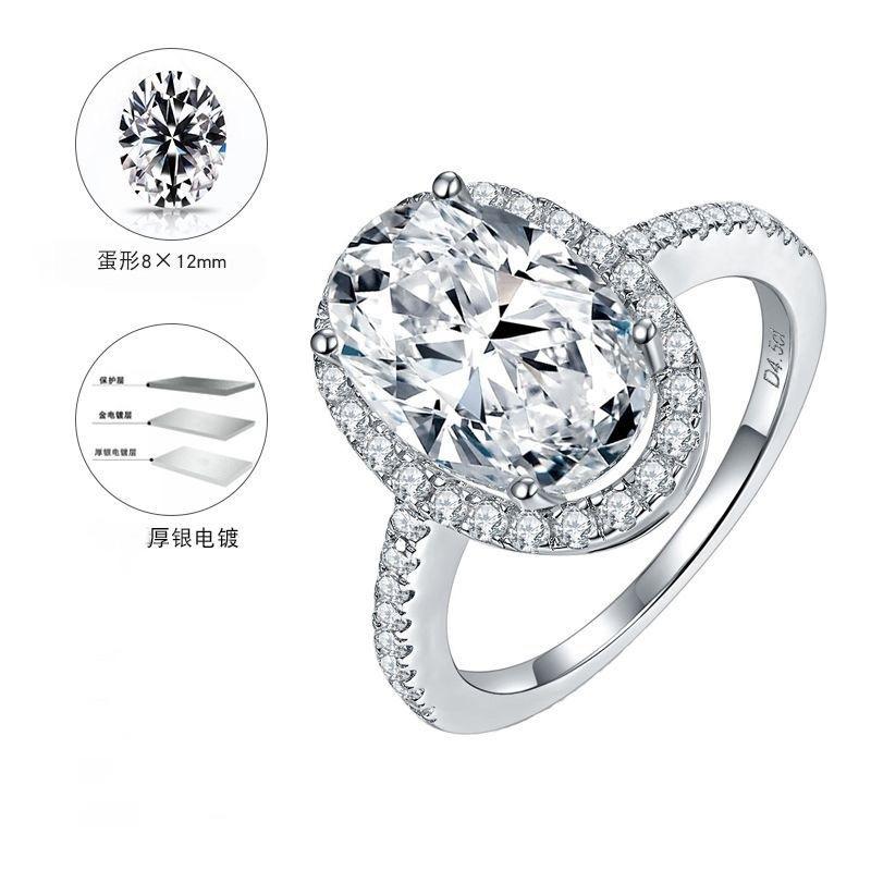 Venta caliente transfronteriza, transmisión en vivo de Xi Yin, popular anillo de moissanita con diamantes de imitación de 2 quilates de gran tamaño, con diamantes galvanizados para mujer