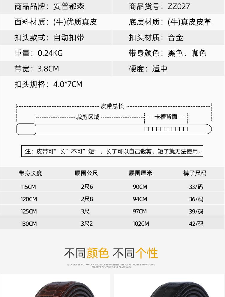 Cinturón de hombre nuevo, directo de fábrica, con diseño de cocodrilo, hebilla automática, de cuero puro de dos capas, venta al por mayor