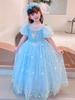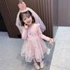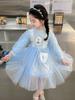 Vestido de princesa Elsa de manga larga estilo coreano para niñas, nuevo vestido de Elsa de otoño 2025 para niños, vestido de malla de algodón de moda