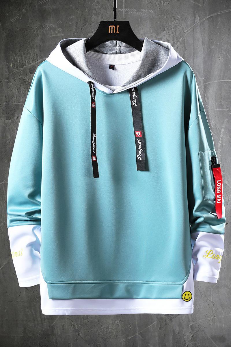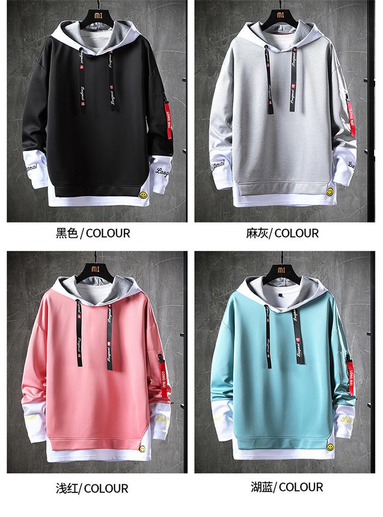 Sudadera falsa de dos piezas para hombre, primavera y otoño, nuevo estilo coreano, chaqueta con capucha de moda, tops de estudiante guapos y juveniles para hombre