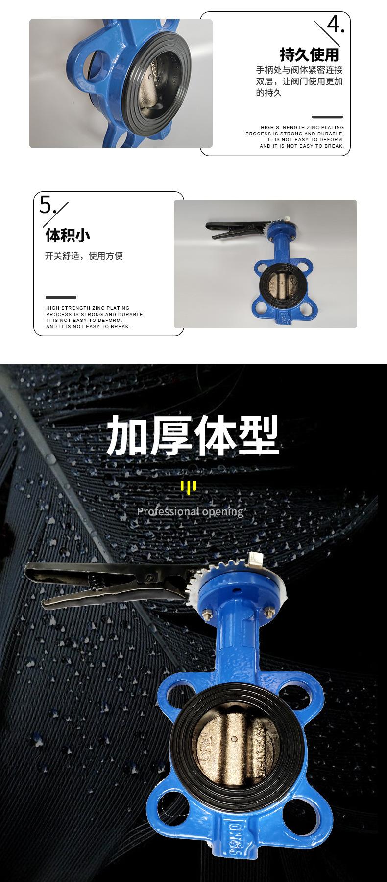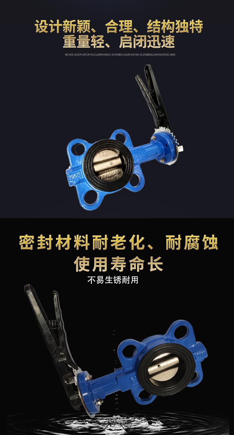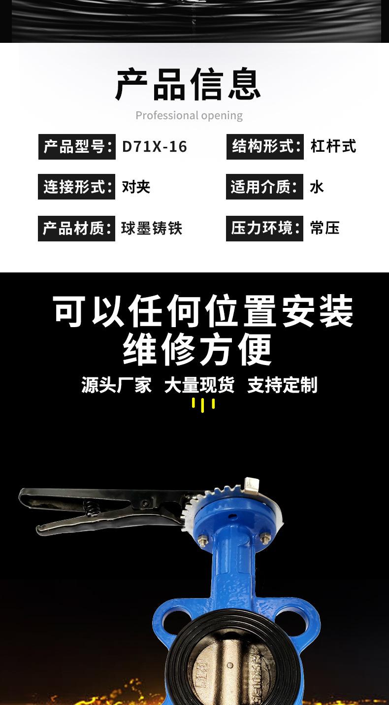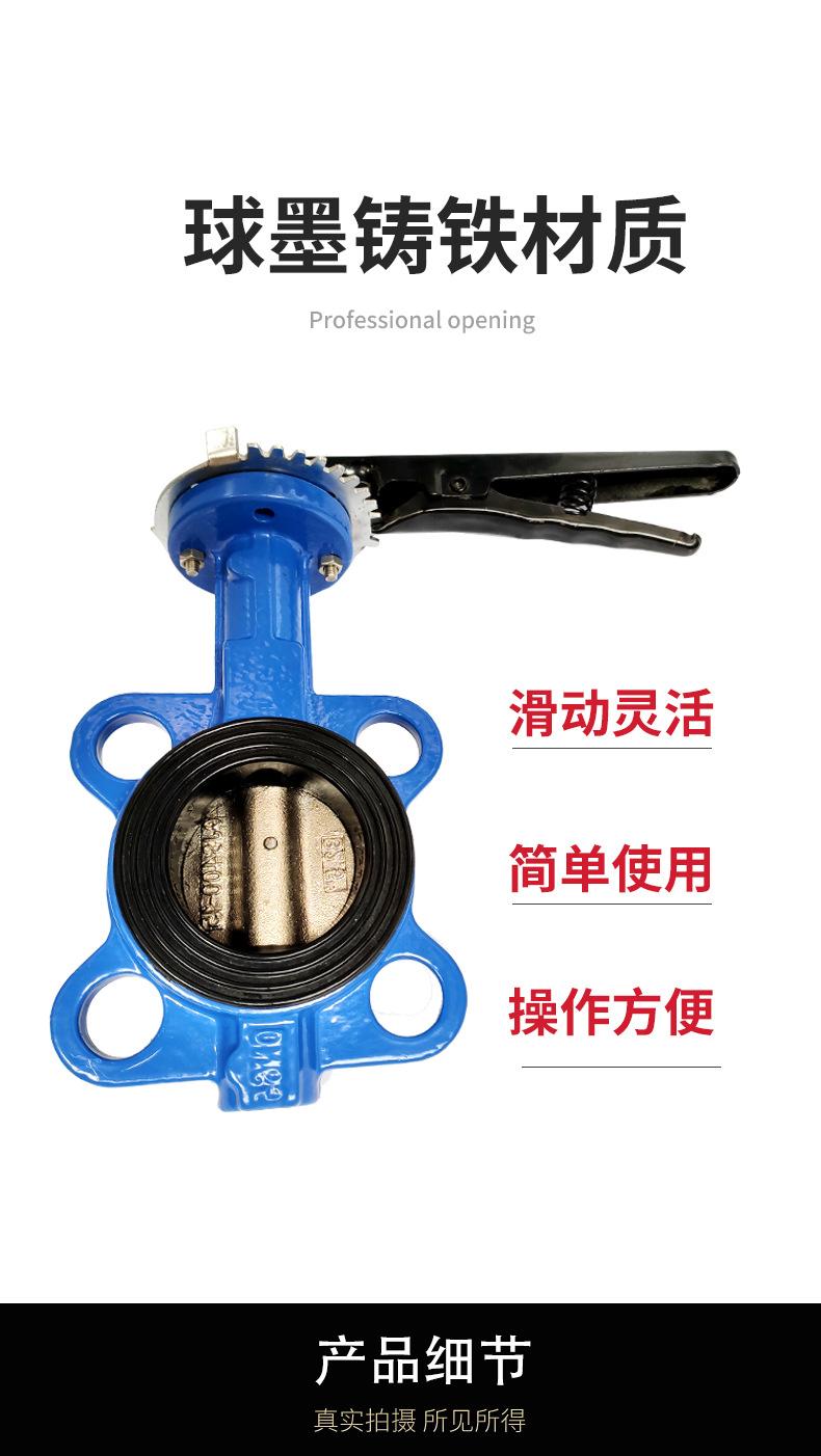 Válvula de mariposa tipo wafer manual de suministro puntual D71X-16Q, manija de válvula de mariposa tipo wafer, válvula de disco de línea media de hierro dúctil