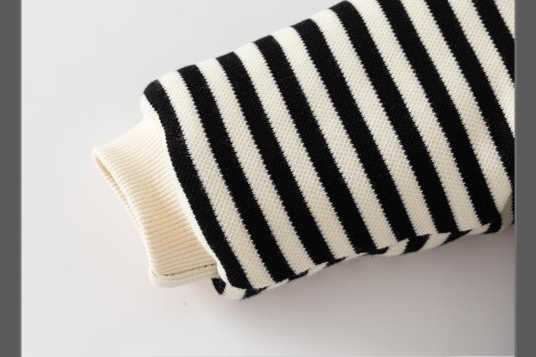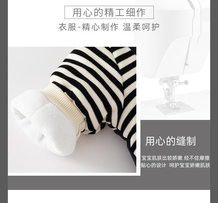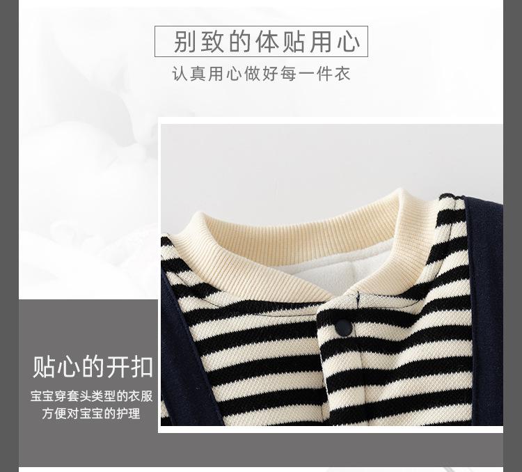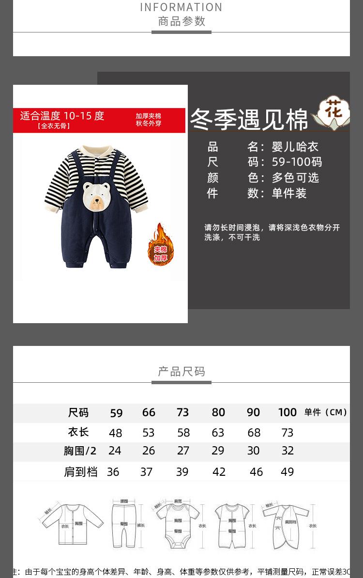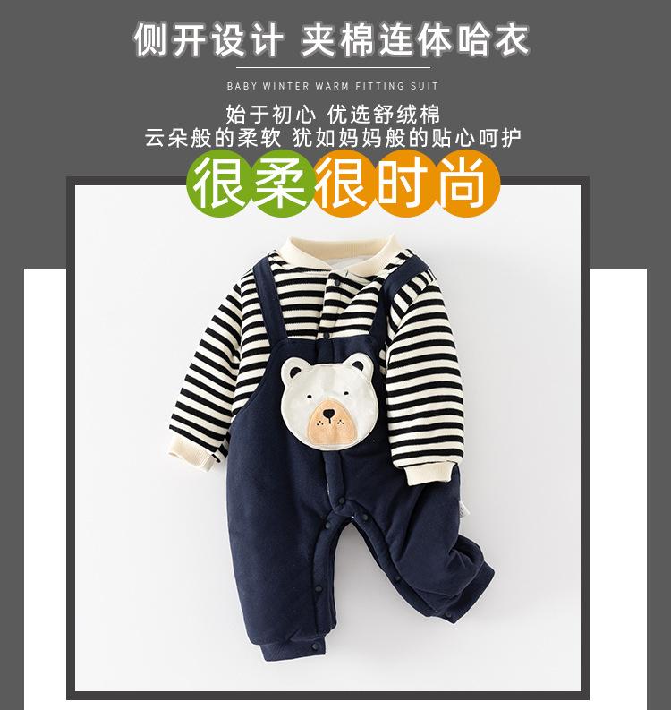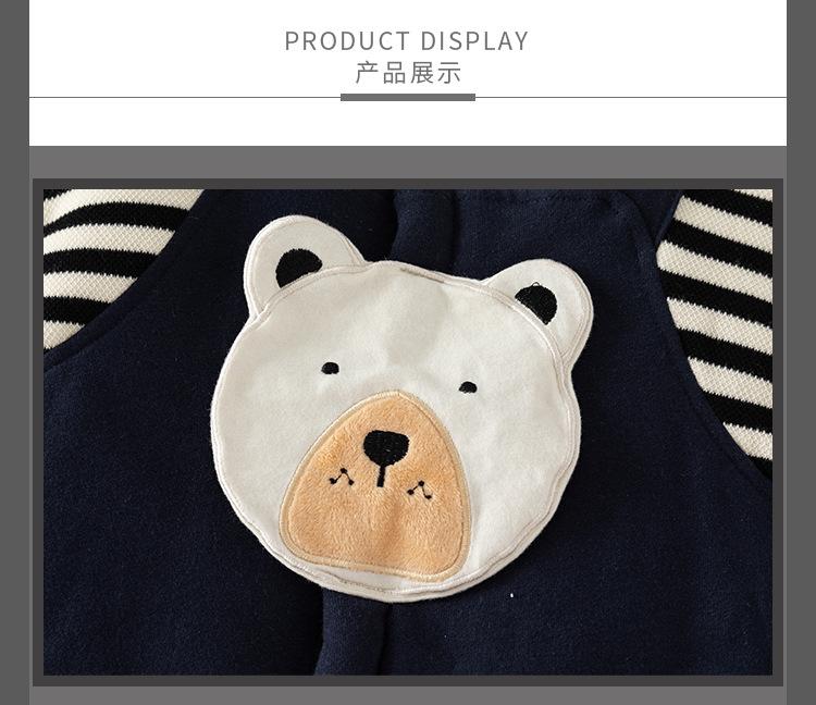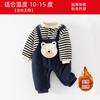 Thickened cotton jumpsuit [striped embroidered baby bear]]