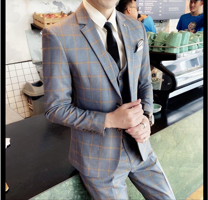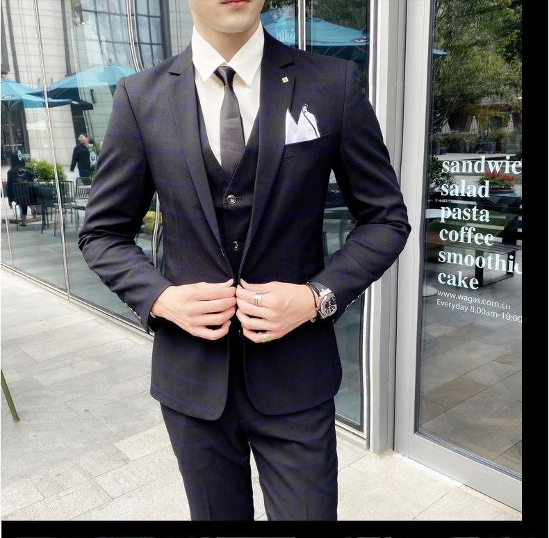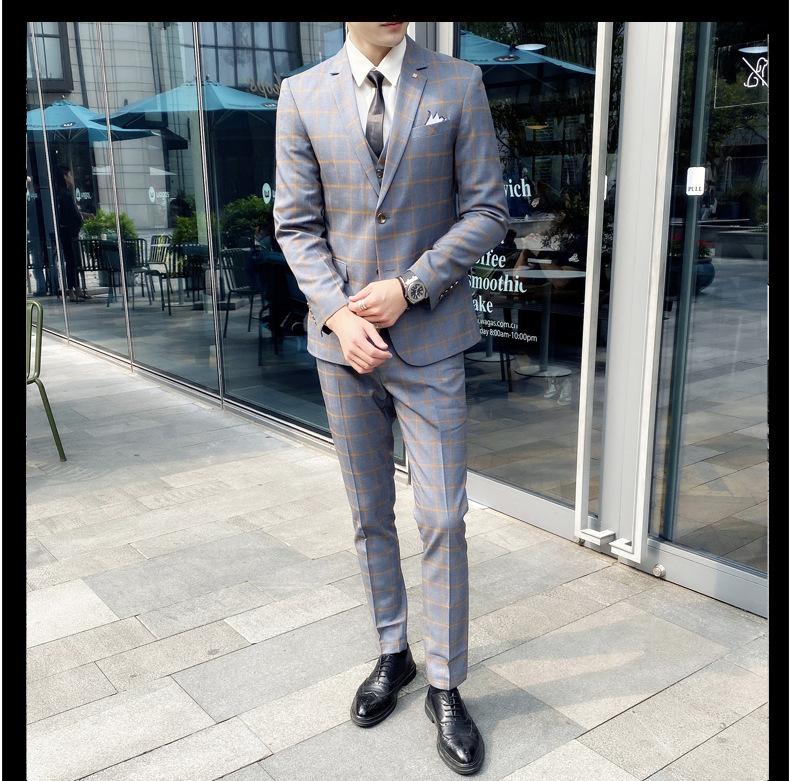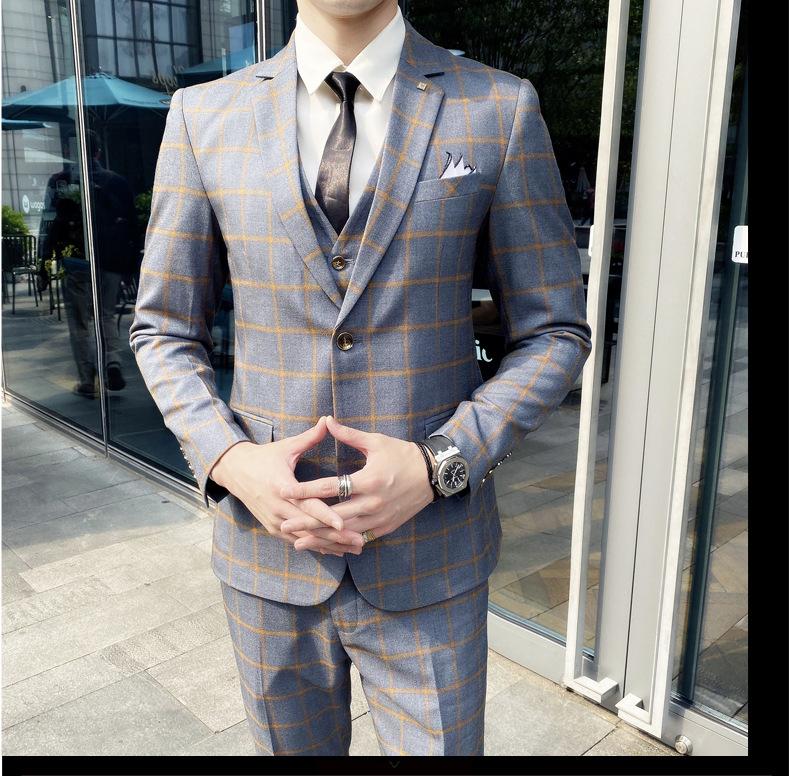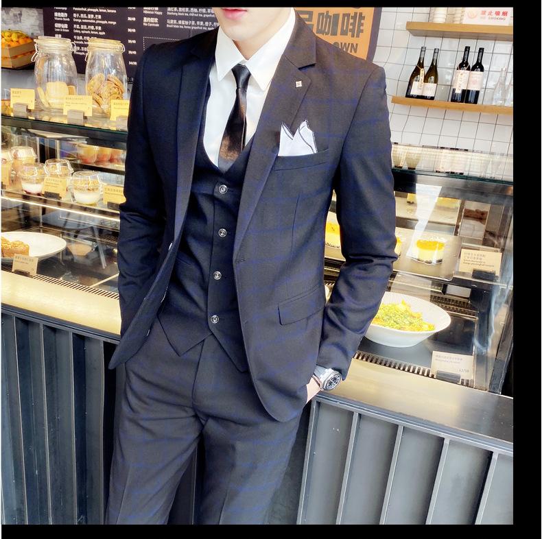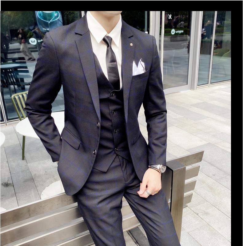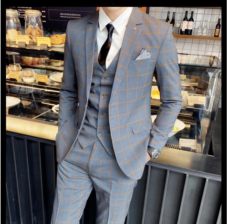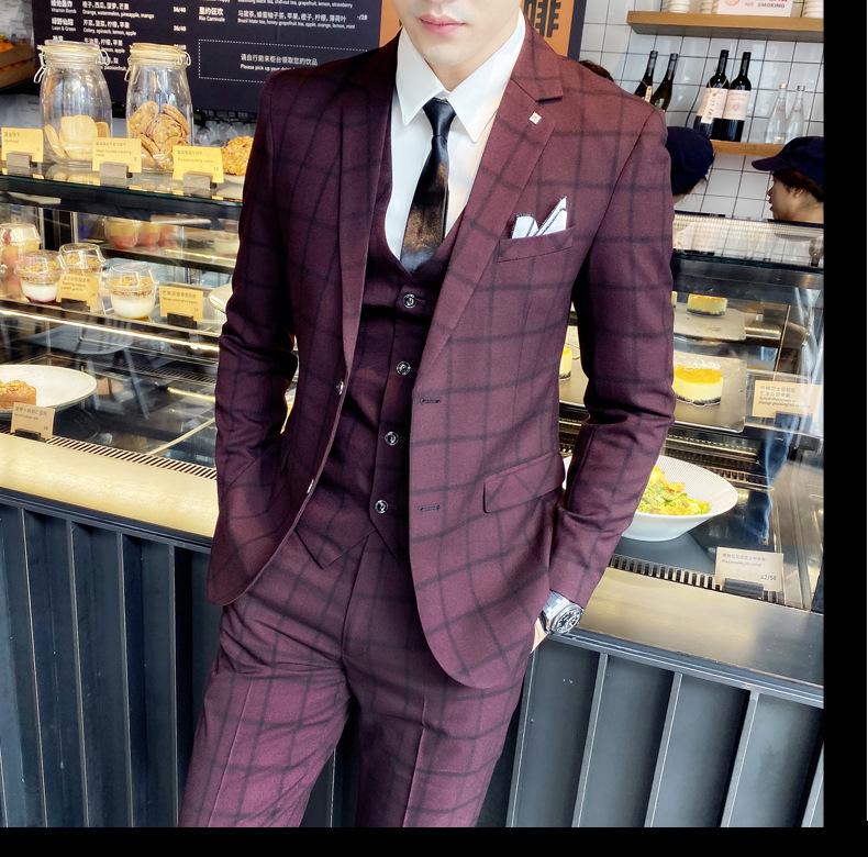 Nuevo traje de hombre a cuadros coreano de corte entallado, traje informal de negocios profesional, traje de tres piezas, vestido de novio