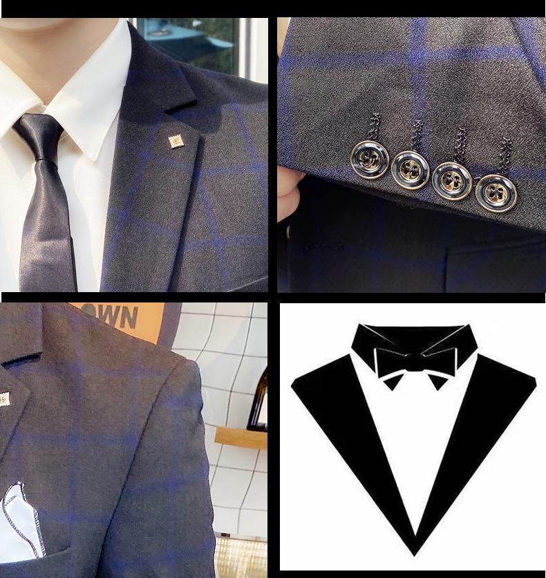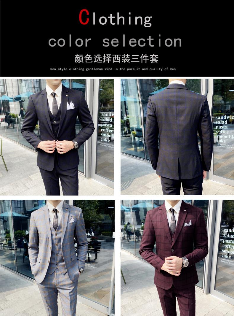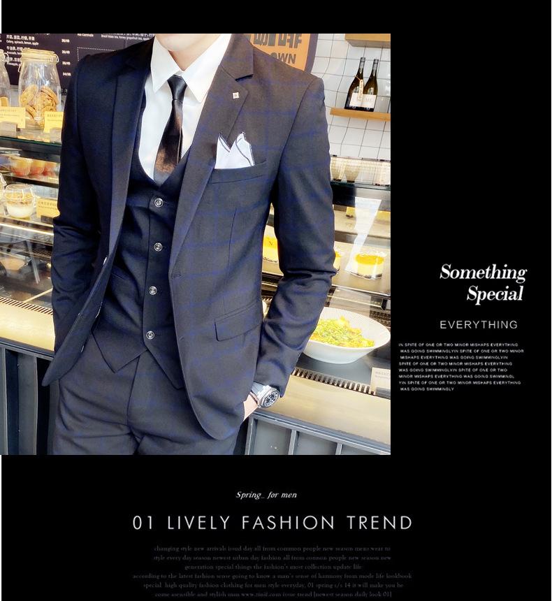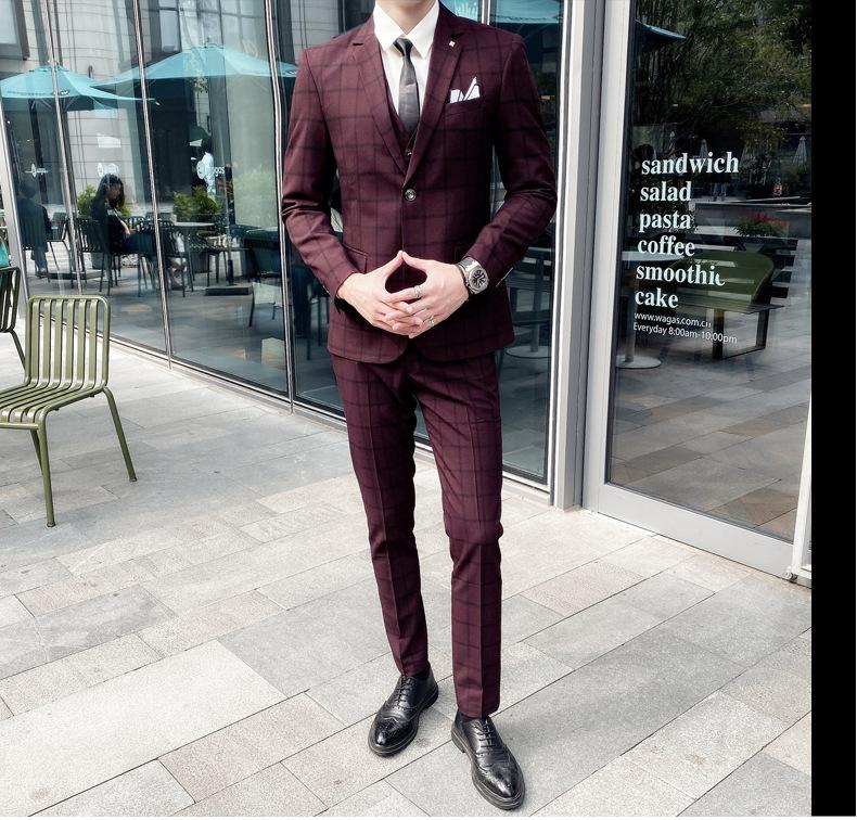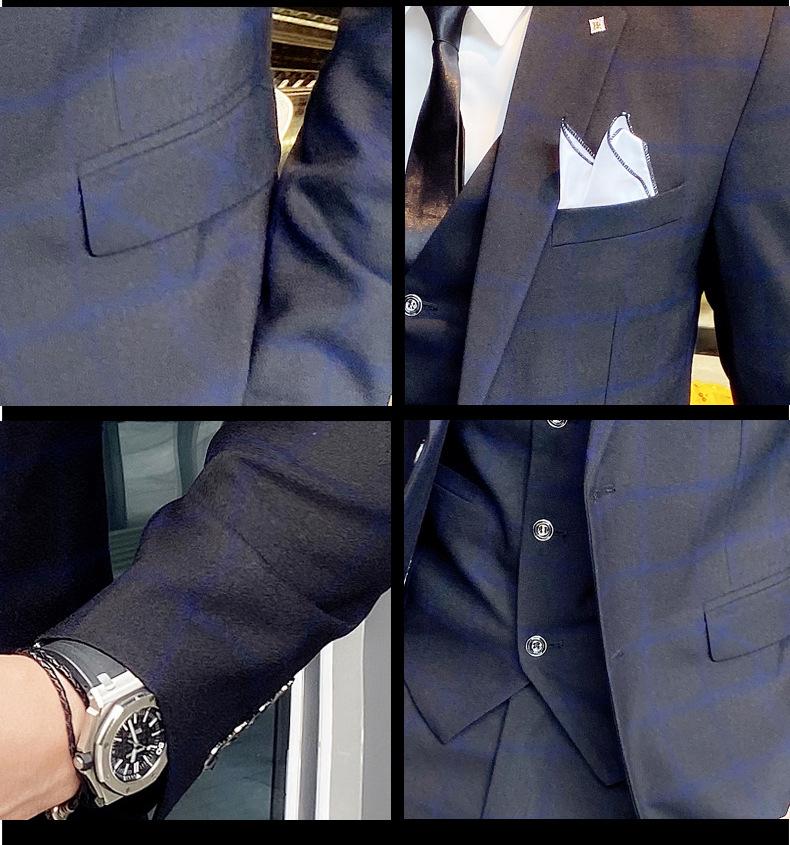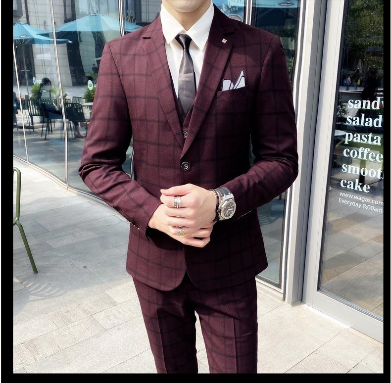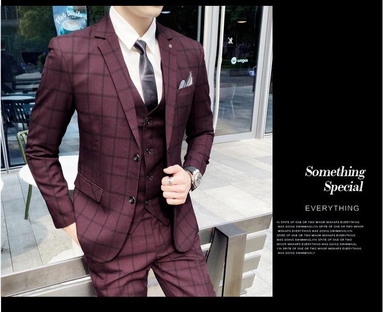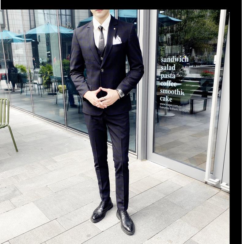 Nuevo traje de hombre a cuadros coreano de corte entallado, traje informal de negocios profesional, traje de tres piezas, vestido de novio