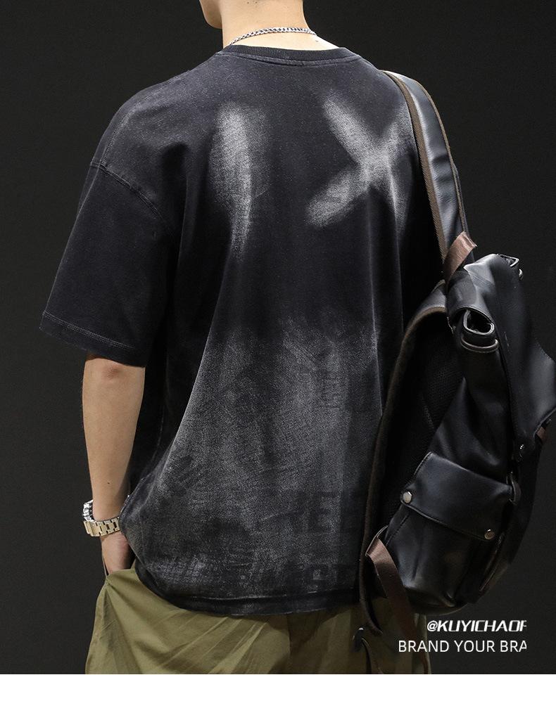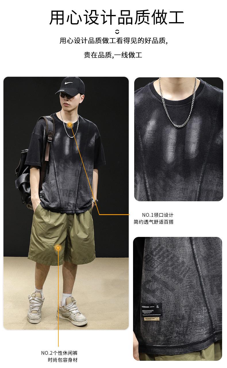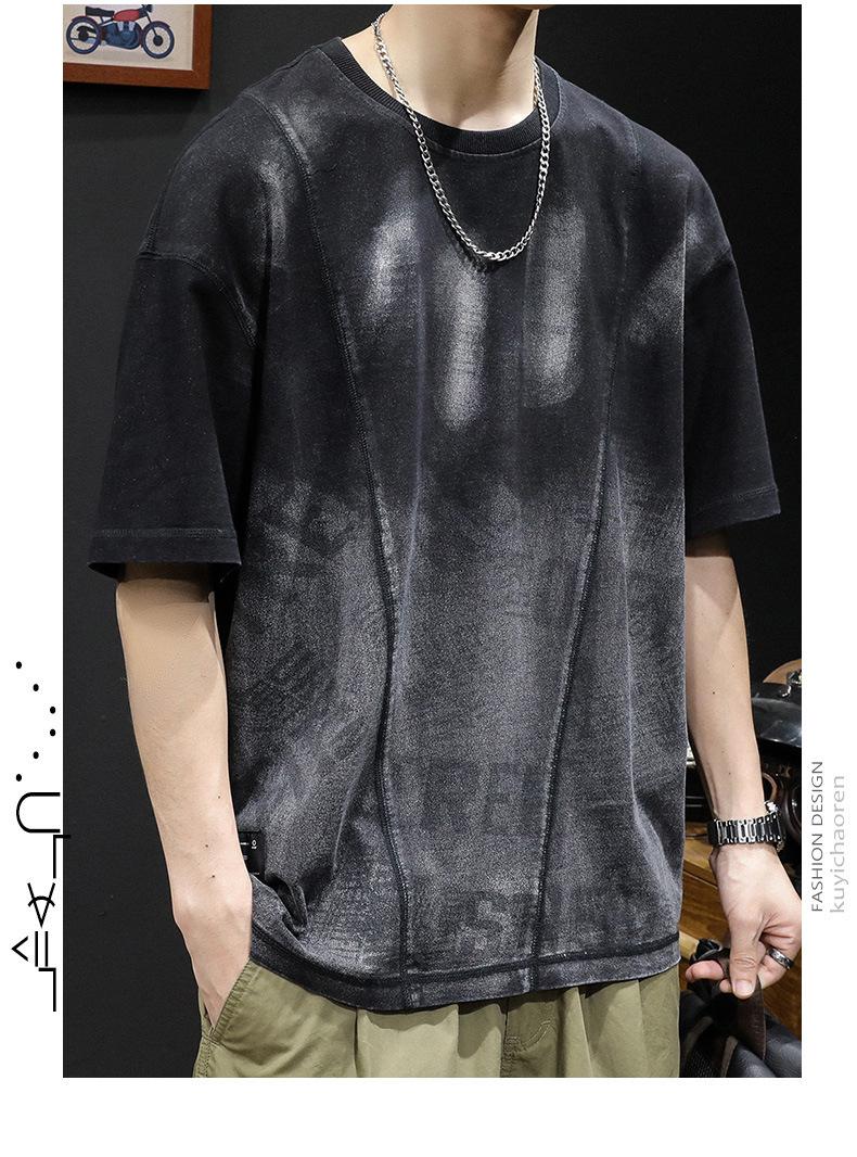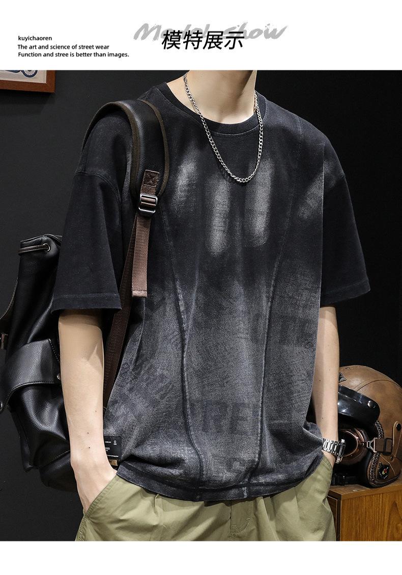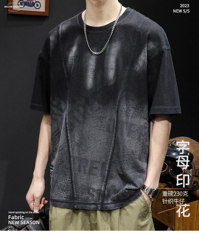 Camiseta de manga corta gruesa para hombre, de verano, holgada, de talla grande, de marca de moda para hombre, estilo vintage 2024