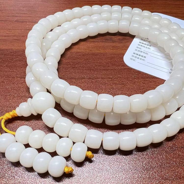 9 Times 7 barrels of beads 108 White Jade Bodhi run repayment, Xingyue Lotus White Jade Bodhi Root, 8 x 10 whi...