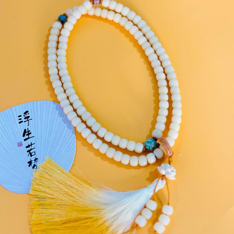 Compra 108 cuentas de rosario Pulsera de cuentas de Bodhi de Jade Blanco Pulsera de raíz de Bodhi de múltiples vueltas Semillas de Bodhi Cuentas portátiles Suministro en vivo al por mayor en Joom.pro