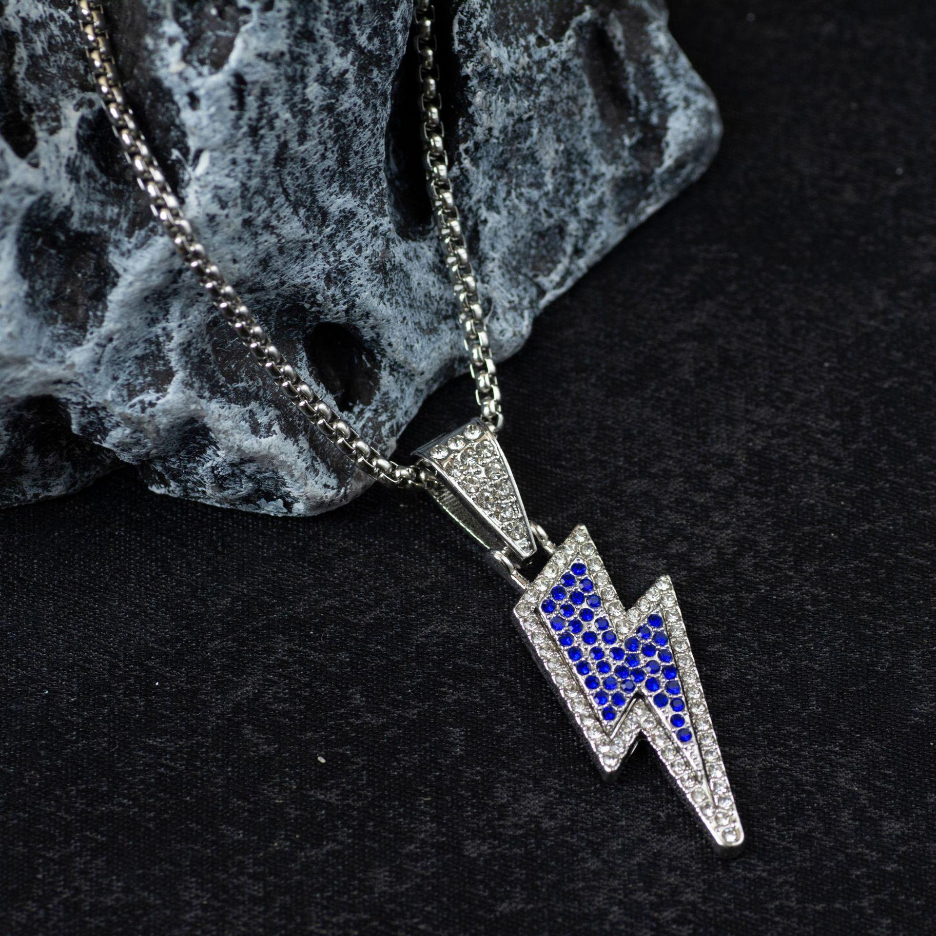 Compra Collar con colgante de rayo bicolor con diamantes completos nuevos transfronterizo, collar de acero de titanio de marca callejera, cadena larga para suéter al por mayor en Joom.pro