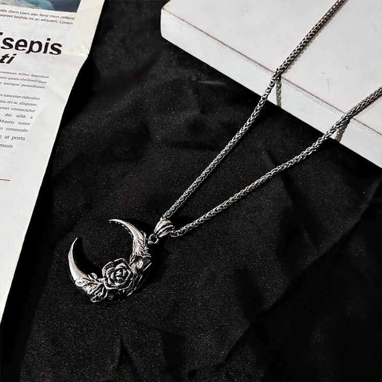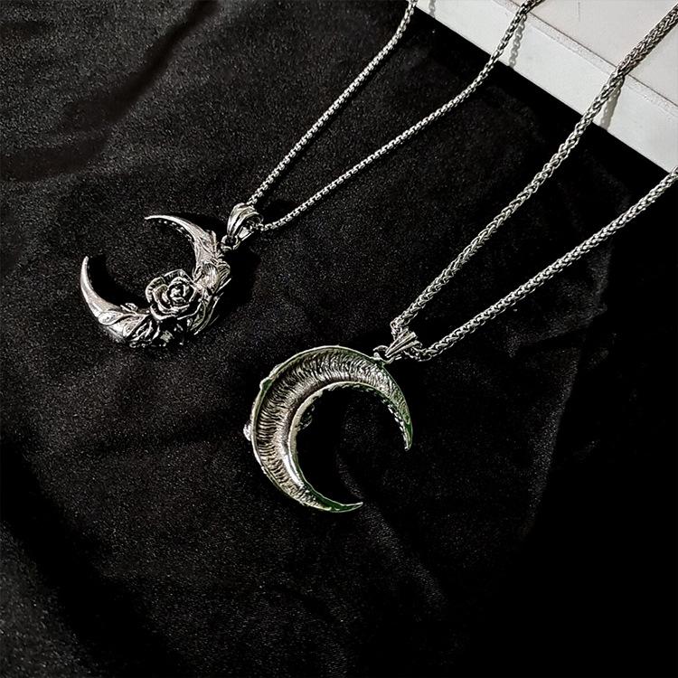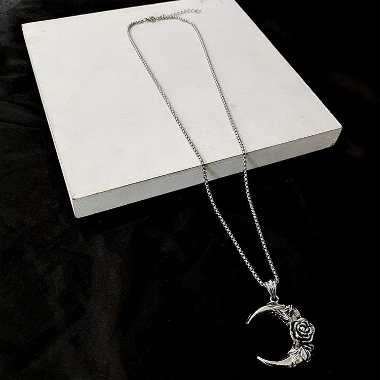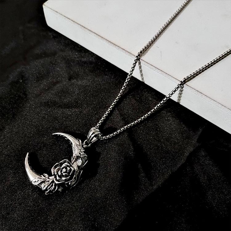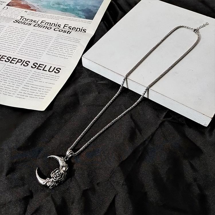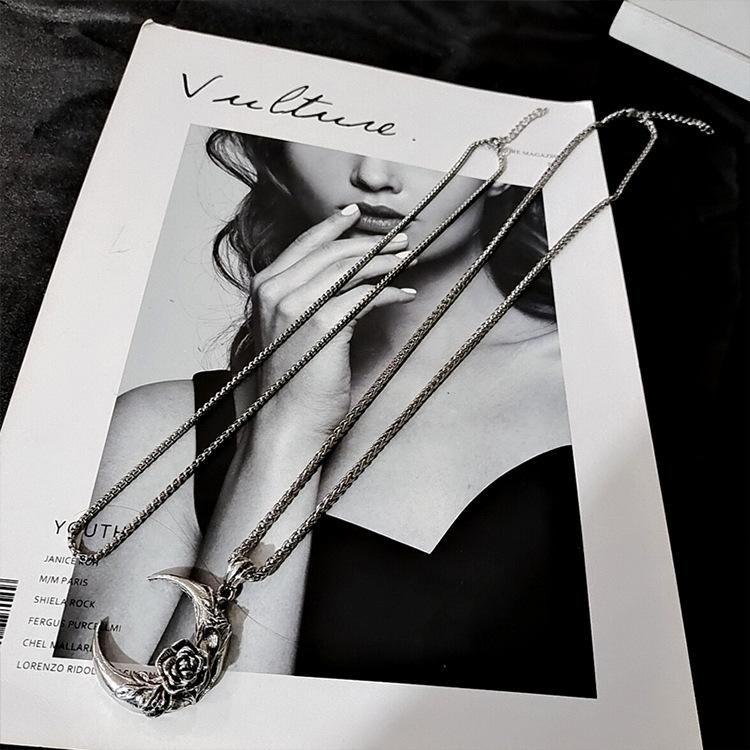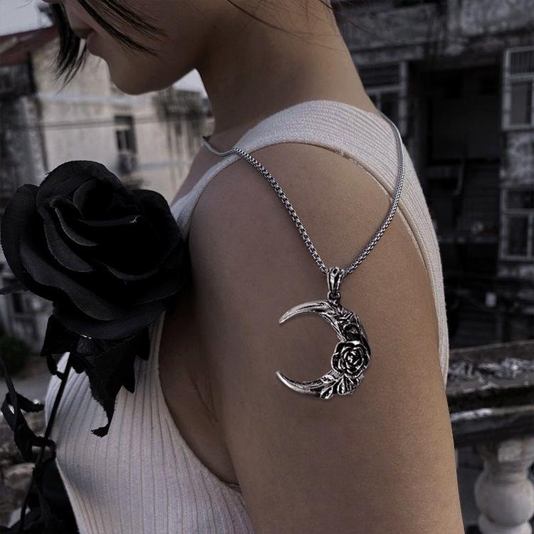 Collar Retro Gótico Luna Rosa Joyería Luna Chica Hot Collar Viejo Colgante Ins Trendsetter Hip Hop