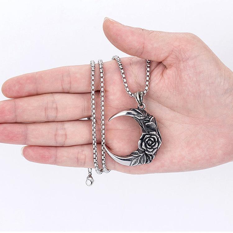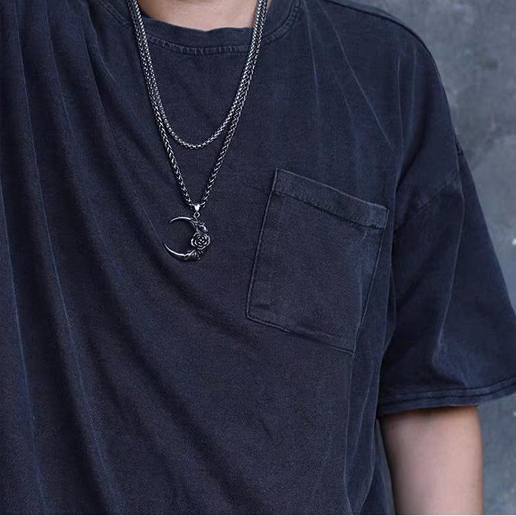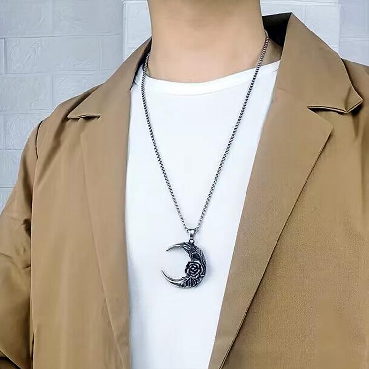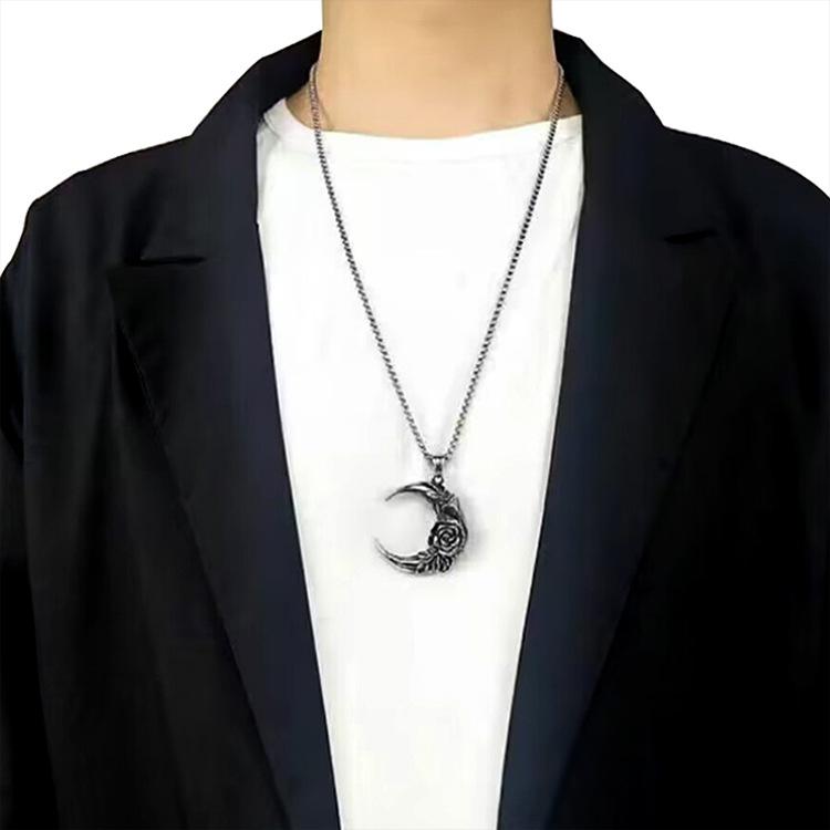 Nuevo collar para hombre Crescent Rose colgante de acero de titanio cadena para suéter colgante hiphop largo moderno para hombre