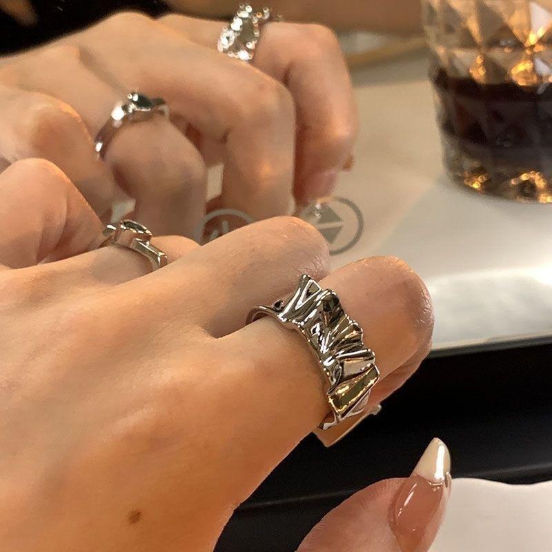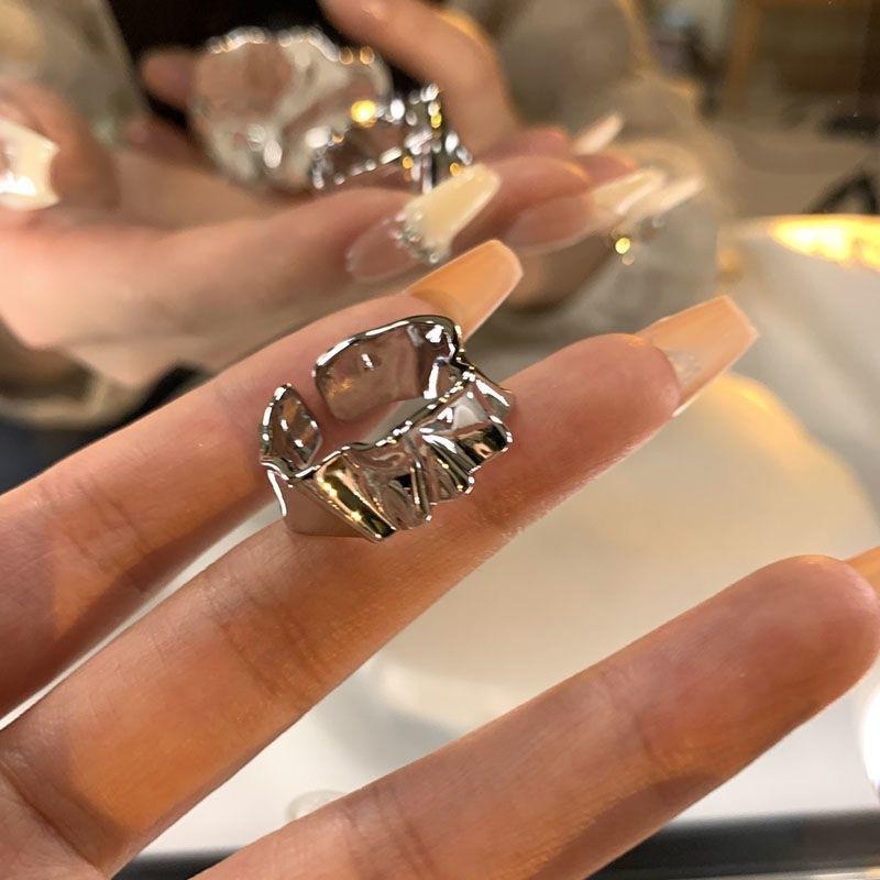 ¡El dueño lo recomendó! Anillo de Amor con Goteo de Aceite de Textura Irregular para Mujer, Anillo de Dedo de Moda de Nicho de Estilo Frío Trendy