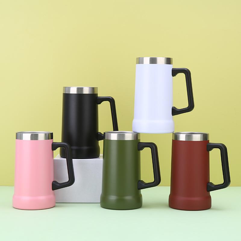 Suministro transfronterizo de taza de vacío de acero inoxidable de 24 oz con asa, portátil, de gran capacidad, para cerveza brasileña, taza de café