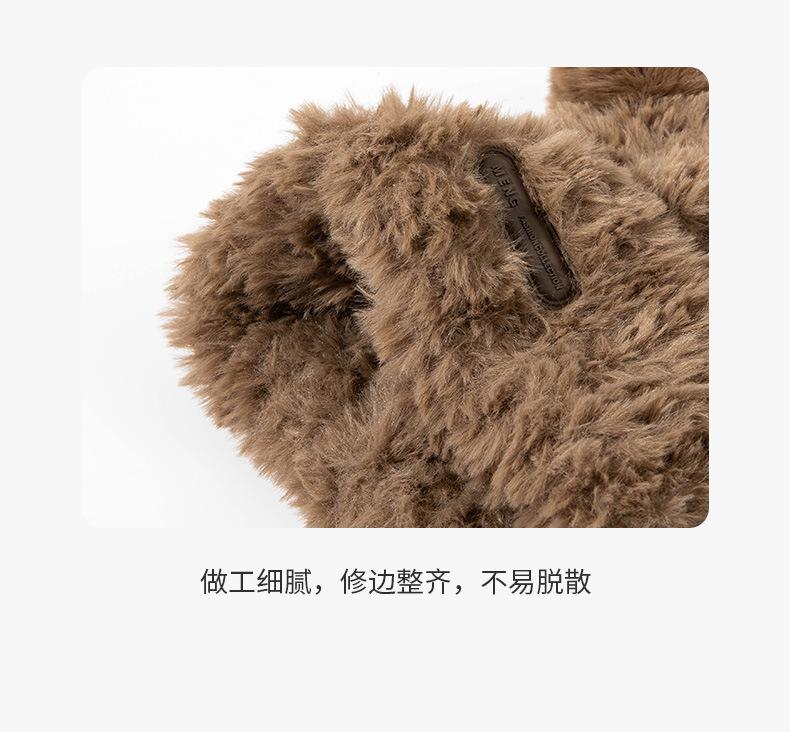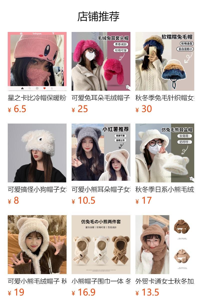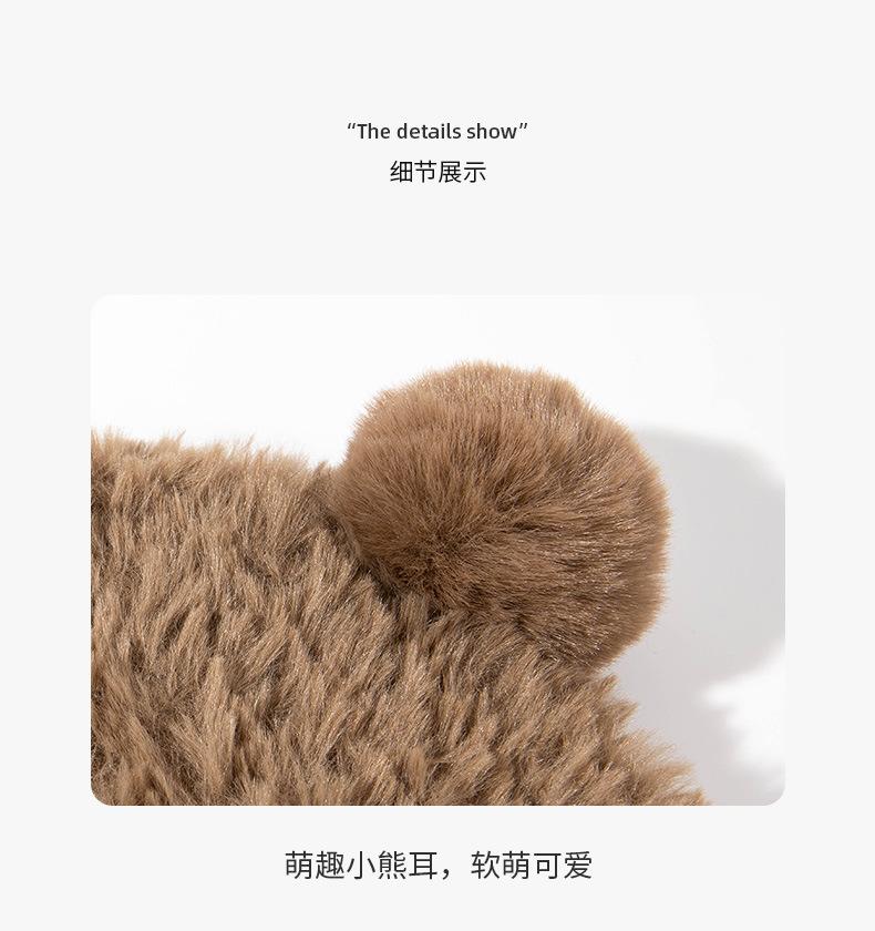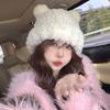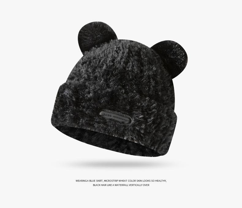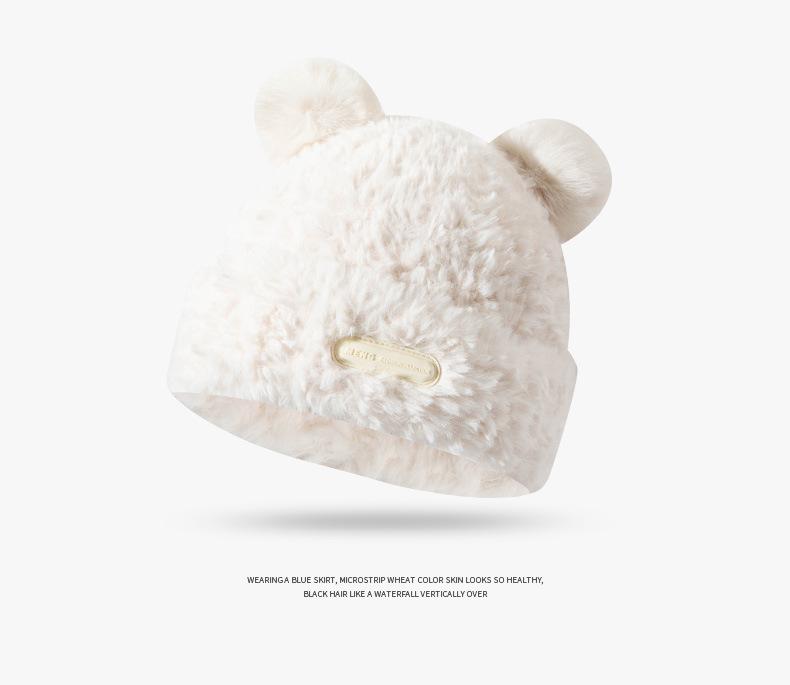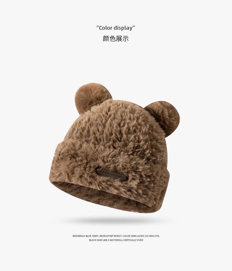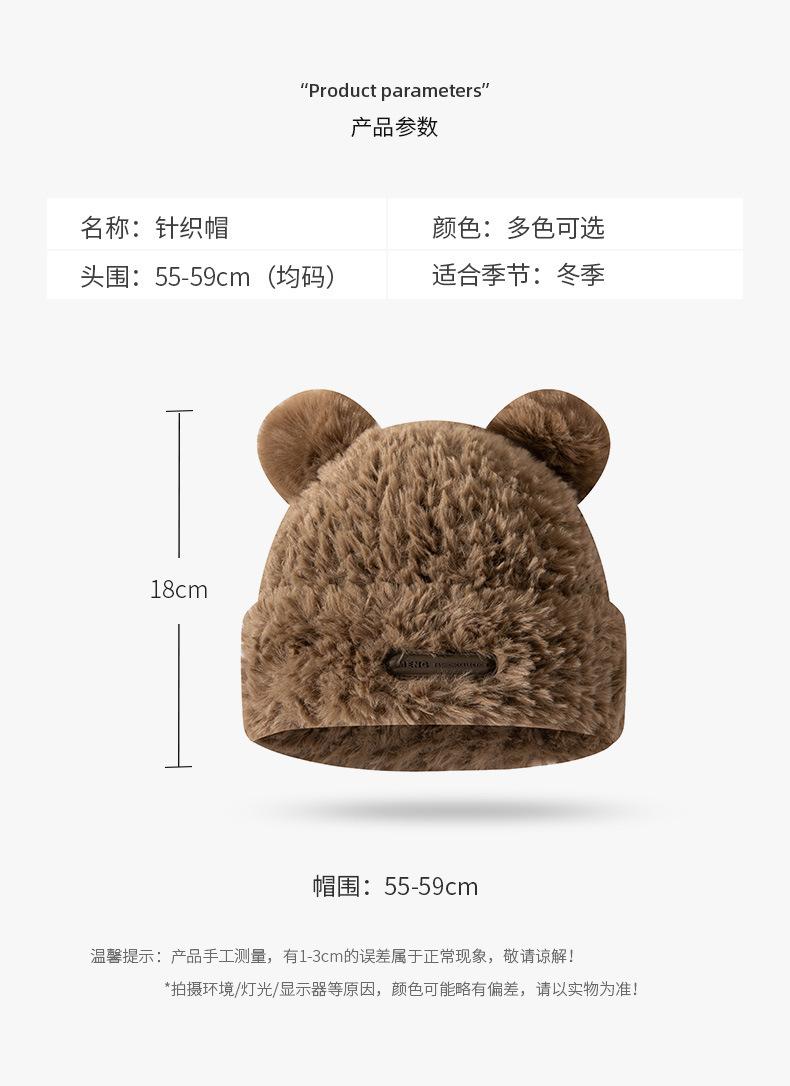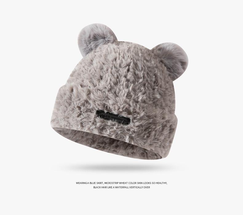 Otoño e Invierno Lindo Oso Felpa Protección para las Orejas Gorro de Lana Tejido para Mujeres con Cabeza y Cara Grandes, Sombrero de Felpa Versátil