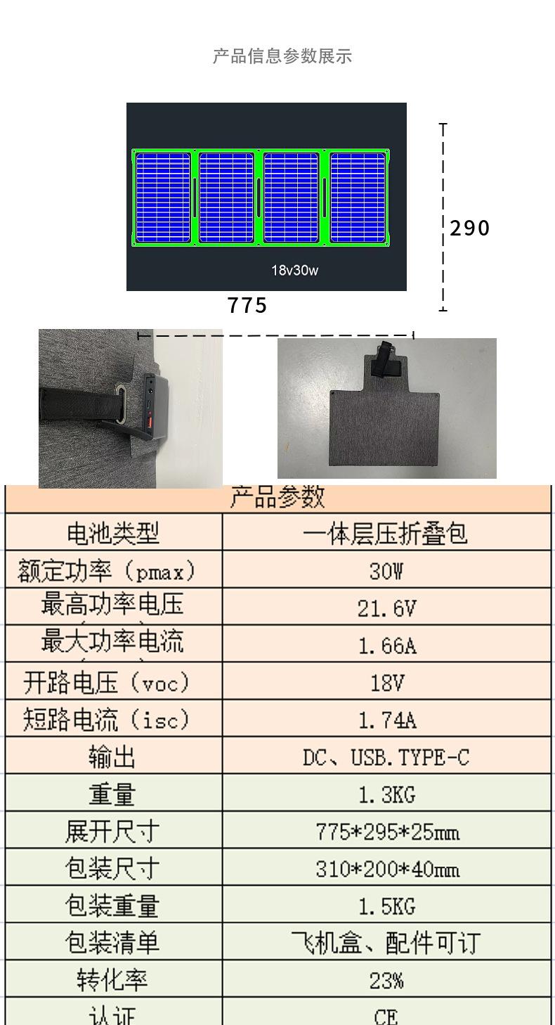 Panel solar plegable laminado integrado para exteriores de 30 W, 40 W y 50 W.