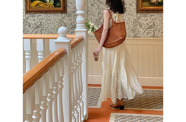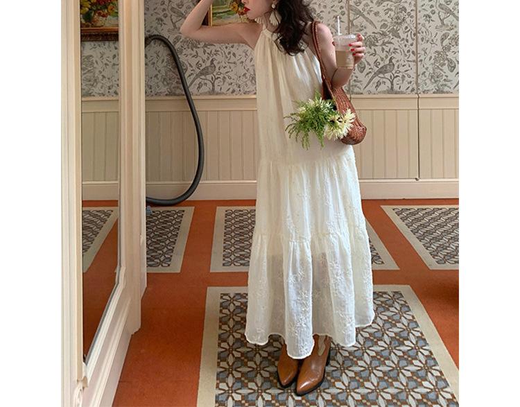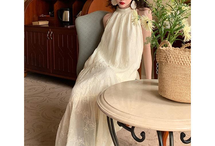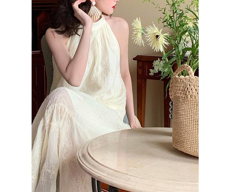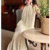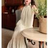 Nuevo Vestido Largo Romántico con Hombros Descubiertos Estilo Francés, Sin Mangas, Halter con Tirantes de Encaje para Mujer